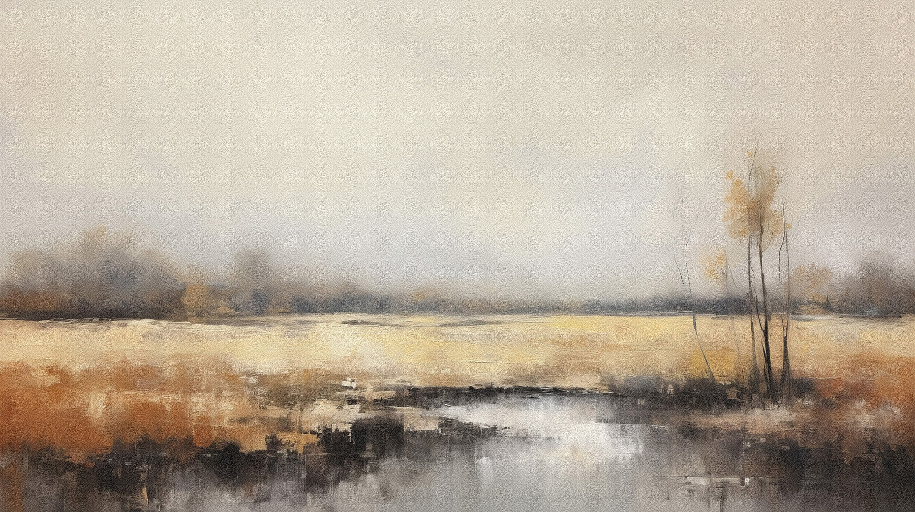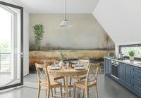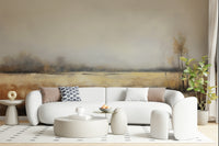 Bring the calm of a misty landscape into your home. This wallpaper for walls features brushstroke artistry with muted gold and brown tones. It portrays a tranquil marsh scene with bare trees, perfect for creating a serene and grounded ambience. The soft colours work well in living rooms, bedrooms, or even a home office, adding a touch of nature-inspired beauty. Let this design transform your space with its peaceful charm and subtle sophistication, offering a tranquil retreat every day.