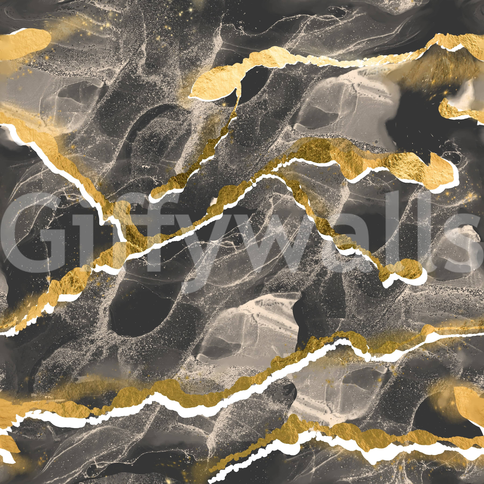 Indulge in the opulent allure of the 'Golden Veins Charcoal Marble' wallpaper. This modern luxe abstract design masterfully blends the dramatic depths of charcoal with the radiant shimmer of golden accents. Like veins of precious metal running through a dark, metamorphic stone, the golden lines cut across a mesmerising marble-like texture, creating a sense of depth and movement. The blend of textures and colours adds to the overall luxuriousness. The design evokes a feeling of sophisticated elegance, adding a touch of grandeur to any space. Perfect for those who appreciate refined aesthetics, this wallpaper transforms ordinary walls into stunning works of art. Elevate your interior with the captivating drama and timeless beauty of this abstract masterpiece.