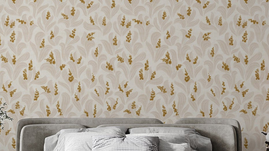 Golden Whispers Lily Valley peel and stick wallpaper
