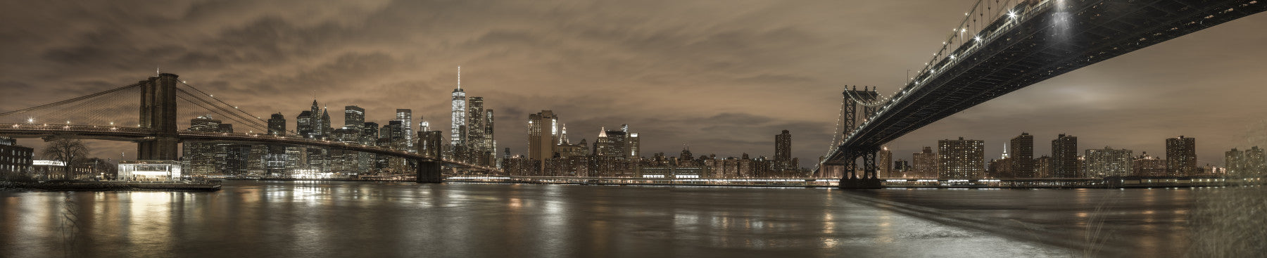 New York City panorama, Brooklyn and Manhattan Bridges, perfect wall art.