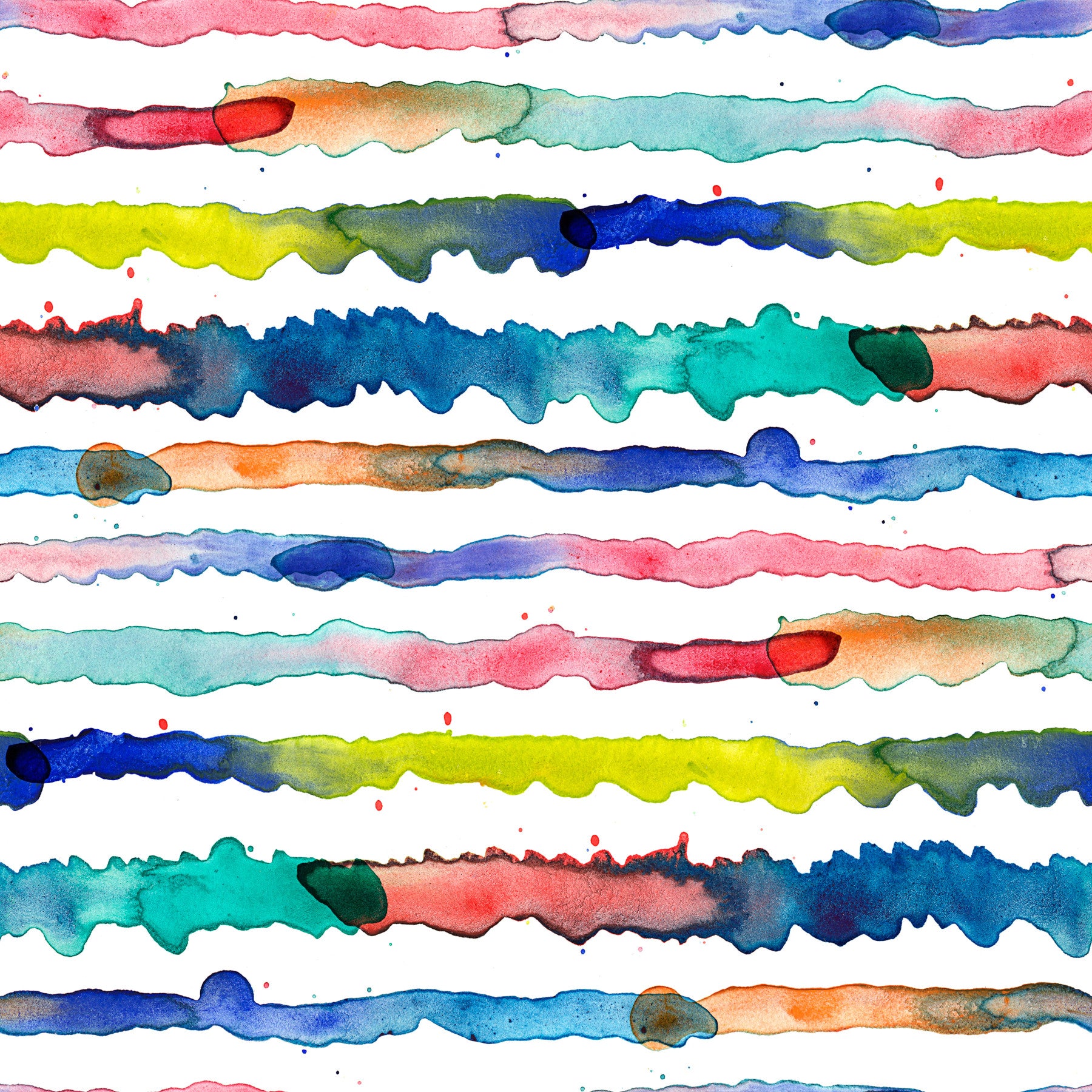 Dive into a vibrant world of color with this 'Gradient Watercolor Stripes Blue' wallpaper. Bold, hand-painted watercolor stripes in a spectrum of blues, greens, yellows, and reds create a dynamic and artistic design. The uneven edges and subtle gradient transitions within each stripe add a touch of organic texture, while the white background provides a clean, crisp contrast. This wallpaper exudes a playful yet sophisticated energy, perfect for adding a splash of artistic flair to your digital devices. The playful splatters of color add to the spontaneous, hand-painted feel. Experience the visual delight of effortlessly blended hues and captivating texture.