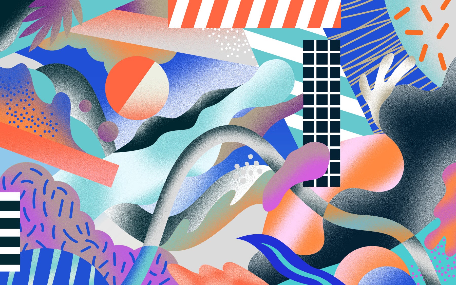 Dive into the vibrant and abstract depths of "Grain Universe," a captivating wallpaper where geometric shapes and organic forms collide in a cosmic dance. This artful piece showcases a rich tapestry of textured surfaces, lending a tactile quality to the digital realm. Bold blocks of color – from serene blues and tranquil teals to vibrant oranges and subtle purples – mingle with intricate patterns and grainy gradients, creating a visually stimulating experience. Imagine peering through a microscopic lens into a vibrant, unexplored cosmos, where abstract landscapes and celestial bodies intertwine. The meticulous detailing and interplay of light and shadow add depth and dimension, making this wallpaper a stunning addition to any device. Let "Grain Universe" transform your screen into a portal to a world of artistic exploration and boundless imagination.