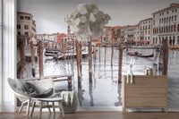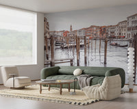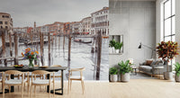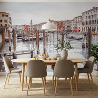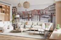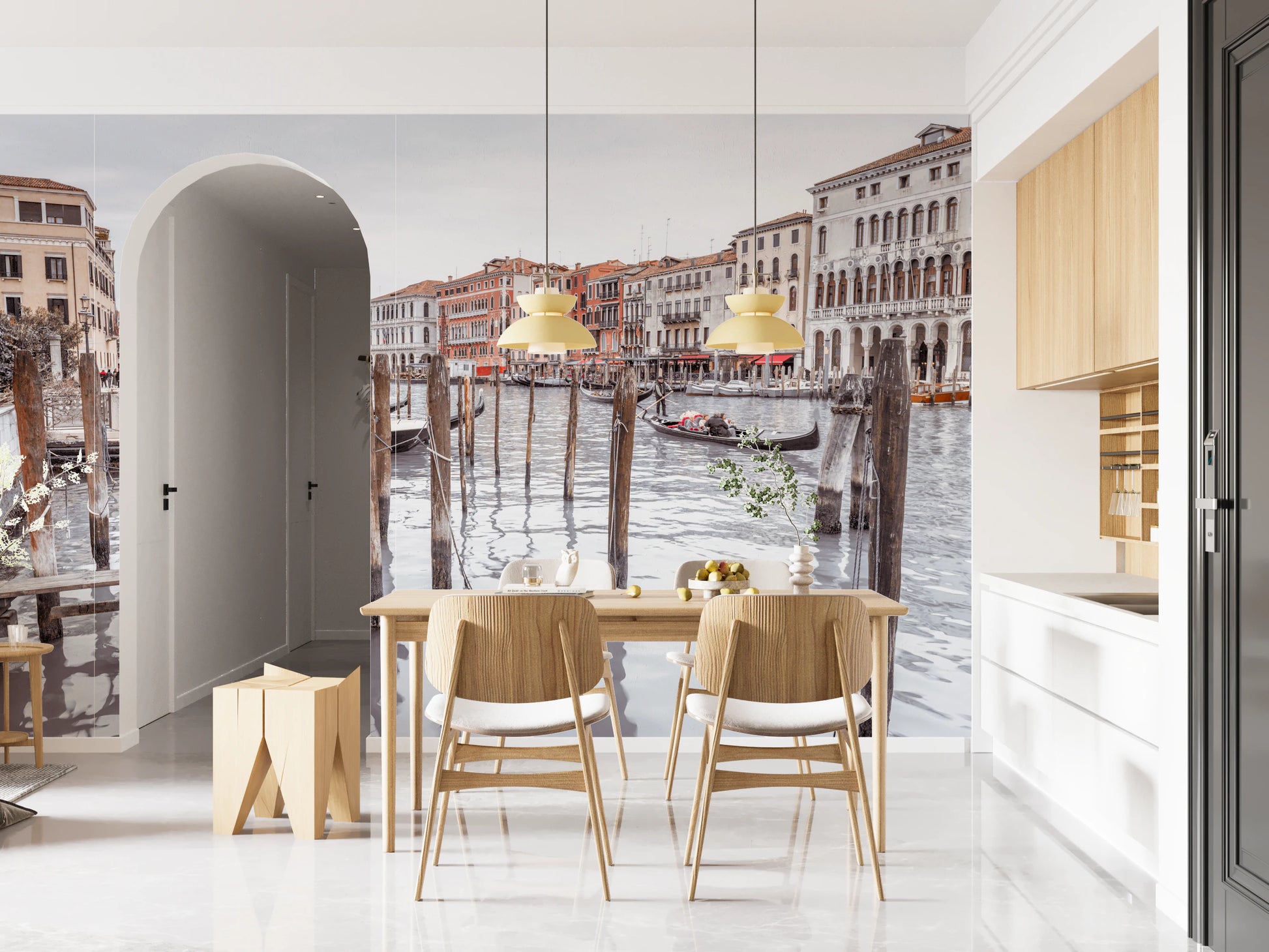 Transform your interior spaces with the allure of the Venetian Grand Canal. This scenic wallpaper for walls captures the essence of this iconic waterway. The design presents rows of classic buildings, gondolas, and a gentle water surface, providing a sense of depth and sophistication. The colour palette combines muted greys, soft whites, and touches of brick red, creating a calm and inviting ambiance. Ideal for living rooms, dining rooms, or hallways, this mural brings a touch of European charm to any space. Enhance your home with this picturesque display of architectural beauty and serene water reflections.