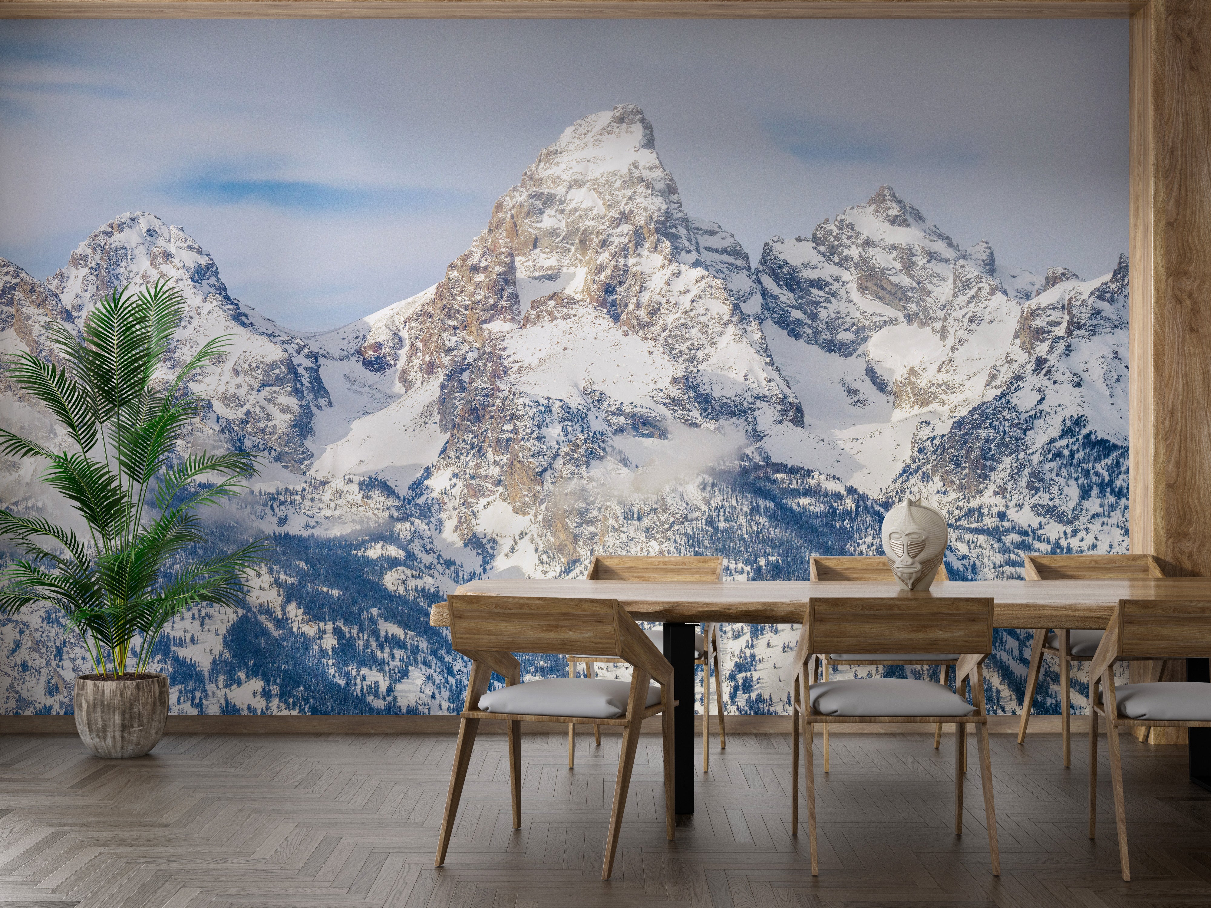 Bring the splendour of the Grand Teton to your office with our meticulously crafted mountain wallpaper. This Grand Teton wall mural captures the raw beauty and rugged peaks of Wyoming's natural wonder, offering a captivating backdrop for any work environment. Ideal for your office wallpaper, it inspires creativity and breathes life into your daily surroundings without a need for escape. This piece merges nature's grandeur with professional decor, ensuring every glance is a visual journey to the great outdoors.