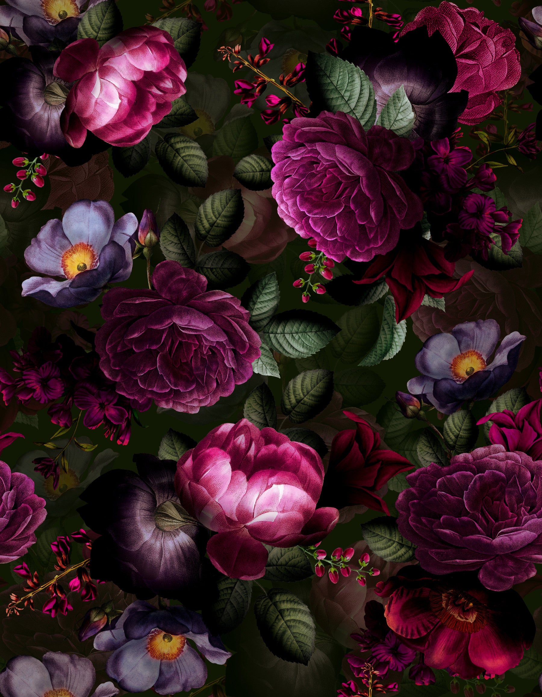 Grandmillennial Dramatic Glamour Heritage Gothic Dark Moody Florals 11 Wallpaper⁠