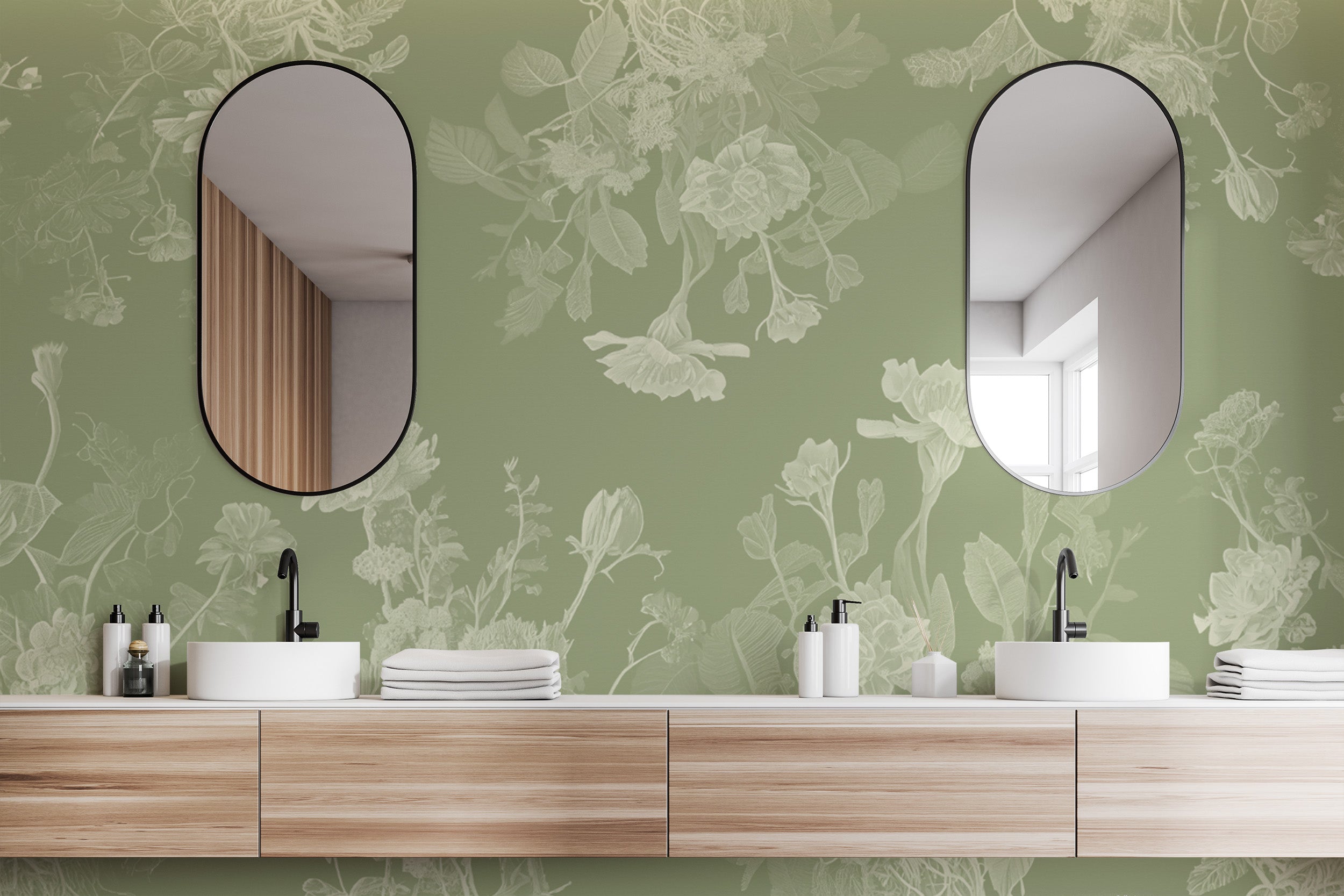 Make your room lighter with our green floral wallpaper suitable for any size wall in a home wanting to add some elegance and nature into their interiors. From living room to bedroom, Kitchen and Home Office, this impressive wallpaper dresses up any space. Our green floral peel and stick wallpaper is offered in many colors like dark green, sage and light green so you can easily match with your decor. Choose from our peel and stick range for an easy application that updates your walls in no time. Those vintage patterns are the perfect tie in for modern and more traditional decors and will never go out of style. Shop our floral green wallpapers to warm up your space and elevate your home's decor; create a serene and restful environment with Giffywalls.