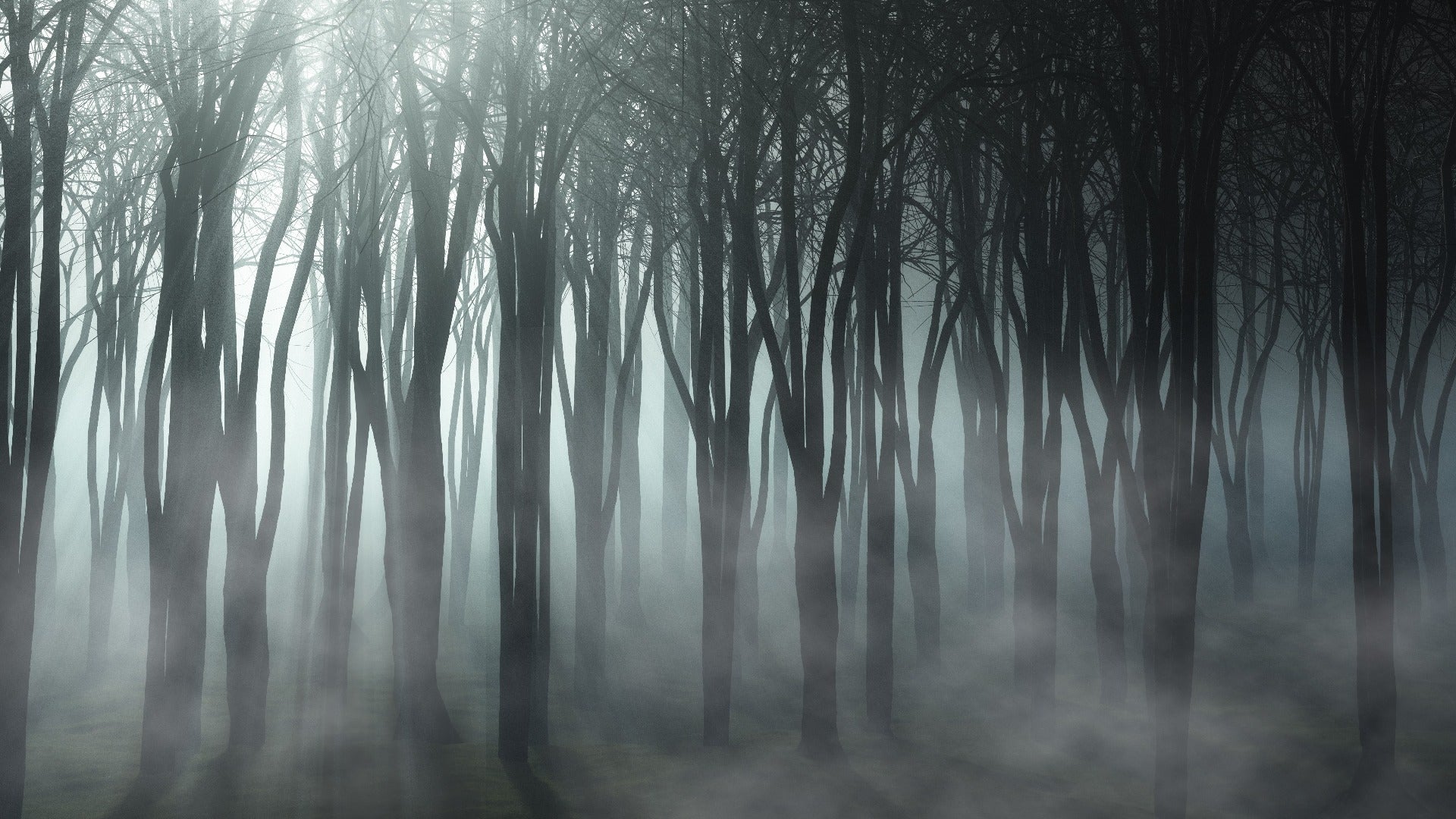 Spooky misty forest wallpaper for Halloween decor