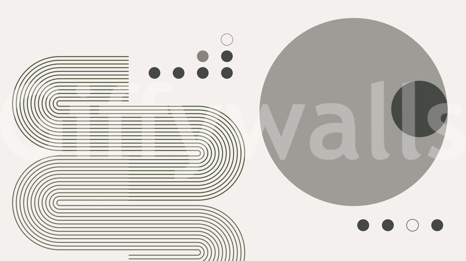 Embrace a sophisticated minimalist aesthetic with this "Grey Tones Retro" wallpaper. The design features a captivating interplay of soft greys and muted olive greens, evoking a sense of calm retro modernism. Curving, concentric lines create a dynamic visual rhythm, contrasted by the simplicity of scattered circles and a large, subtly shaded orb. This wallpaper perfectly blends vintage geometric forms with a contemporary, muted palette, creating a tranquil yet stylish backdrop for your space.