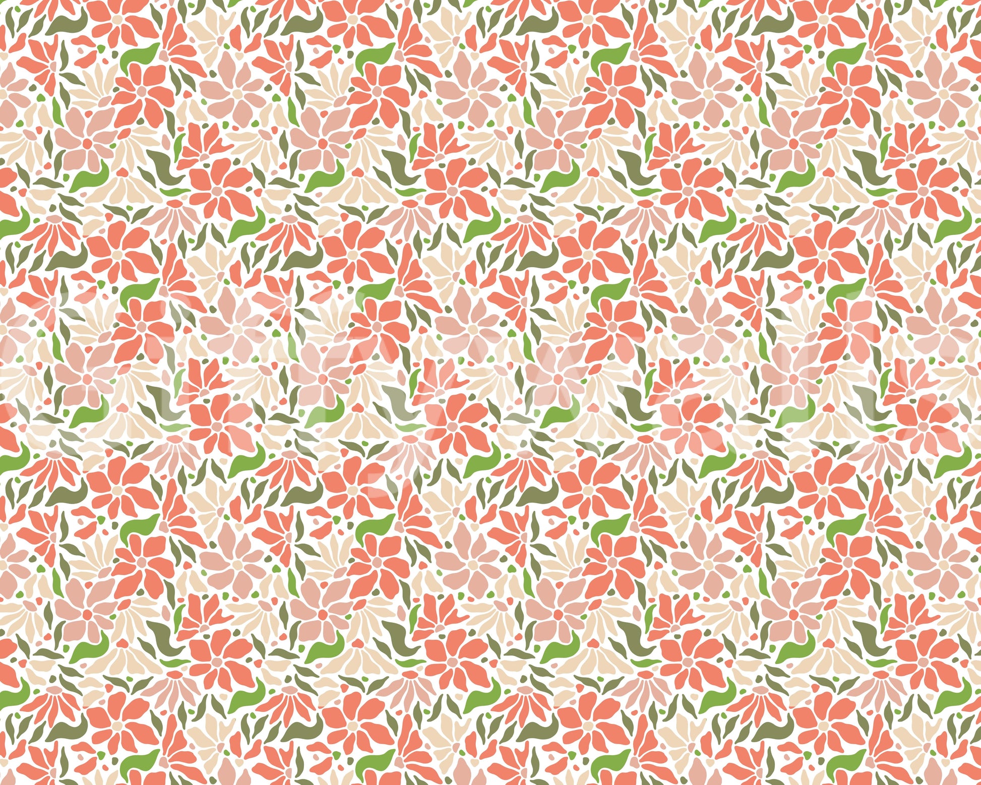 70s-inspired coral green floral wallpaper