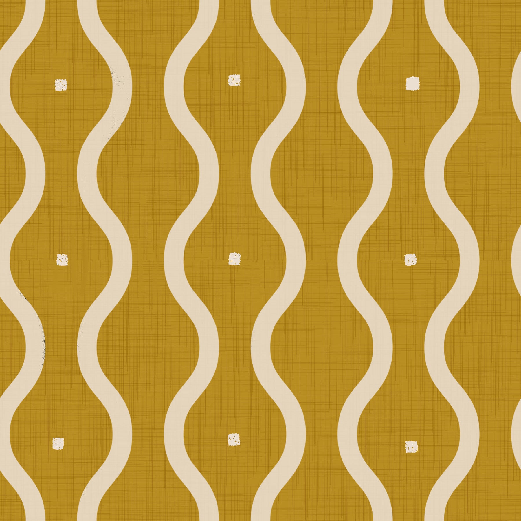 Groovy Waves pattern, bright ocher and beige lines, lively interior uplift.