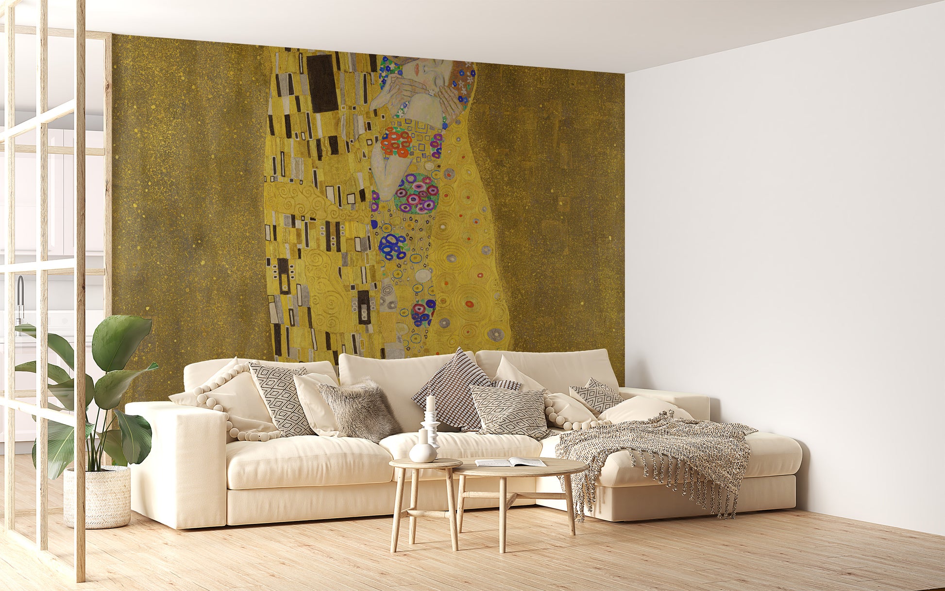 Transform your living area into a masterpiece of romance with our Gustav Klimt kiss wall mural. Inspired by the enduring image of affection, this art wallpaper brings the golden glow and complicated patterns of Klimt's most famous work to your private home. Adorn your partitions with a touch of early 20th-century artistry and embody the pricey environment it affords. Its rich textures and vibrant colors will flip any wall into an art gallery exhibit, presenting an everyday view of one of the most revered portions of artwork history proper in the consolation of your property.