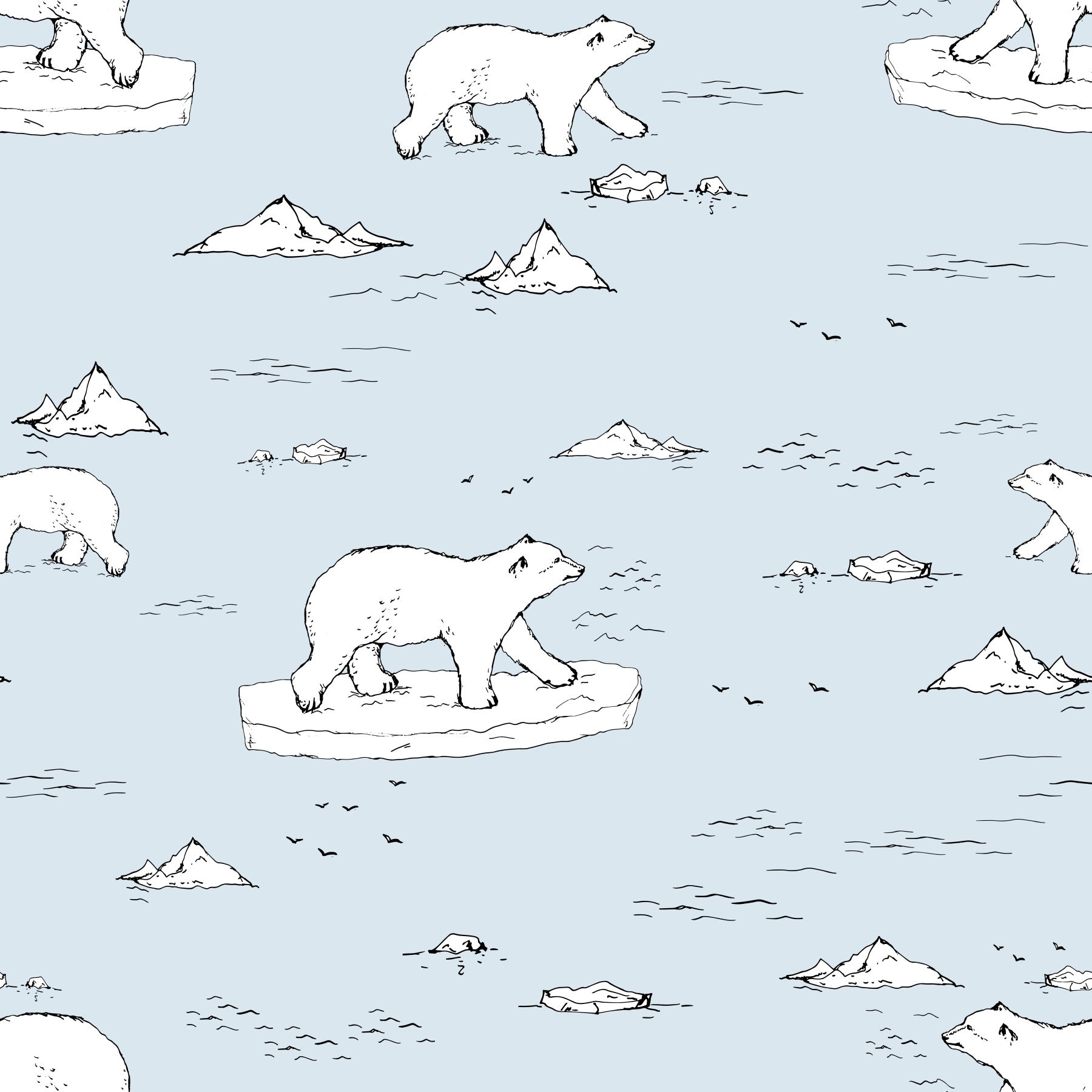 Hand-drawn Polar Bears Wallpaper on a wall