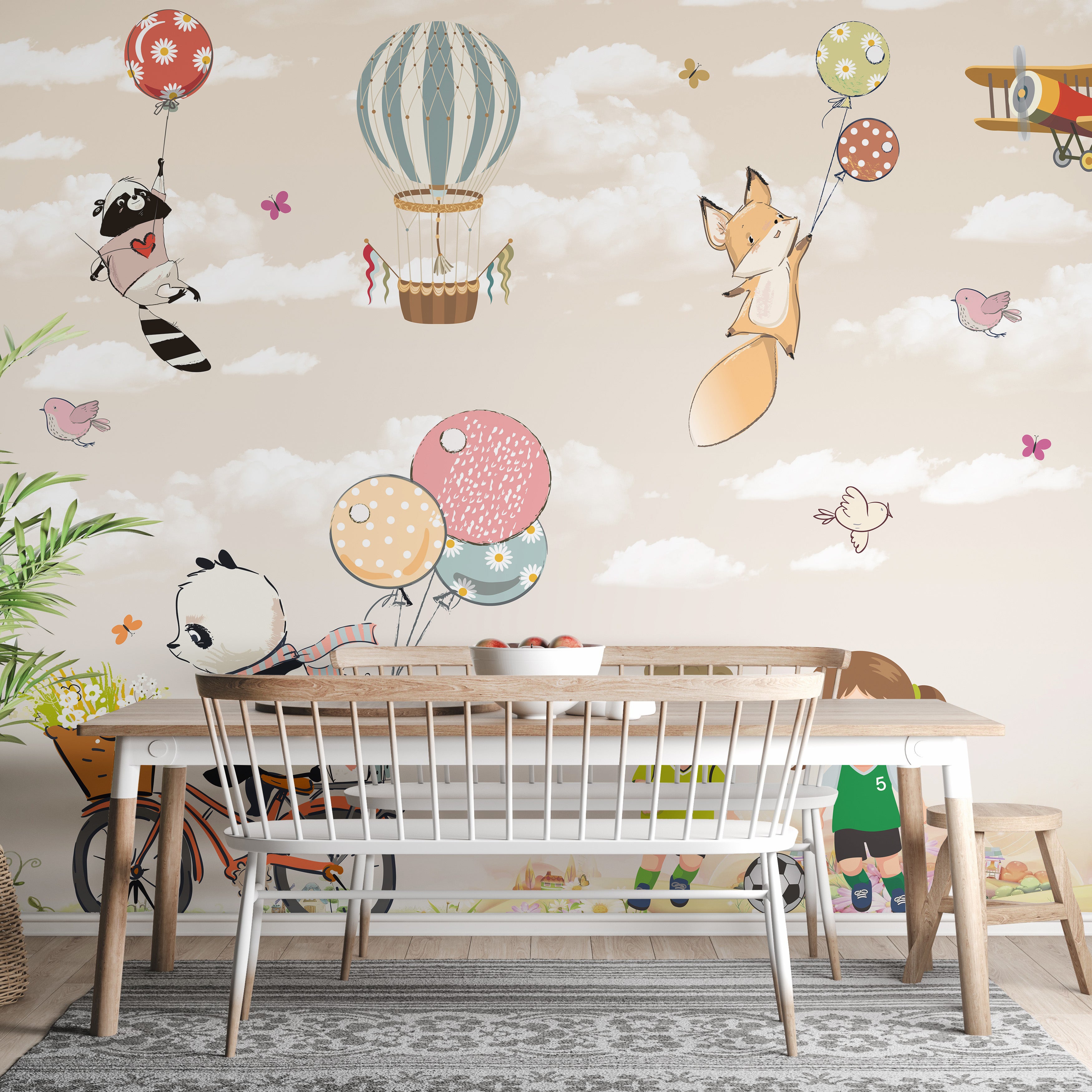 Delight in the charm of the happy kids in garden mural wallpaper, perfect for adorning a childs room. This wallpaper features an enchanting garden scene brimming with joyous kids engaged in playful activities. The beige background of the mural provides a subtle, warm tone that complements a variety of decor styles. With its vivid imagery of children at play amidst a lush garden setting, it brings a sense of whimsy and outdoor adventure indoors. Ideal for sparking imagination and creating a fun, inviting atmosphere, this wallpaper is an excellent choice for parents looking to add a touch of whimsy to their kids room. The Happy Kids in Garden mural is not just a wallpaper, but a gateway to a world of wonder for your little ones.