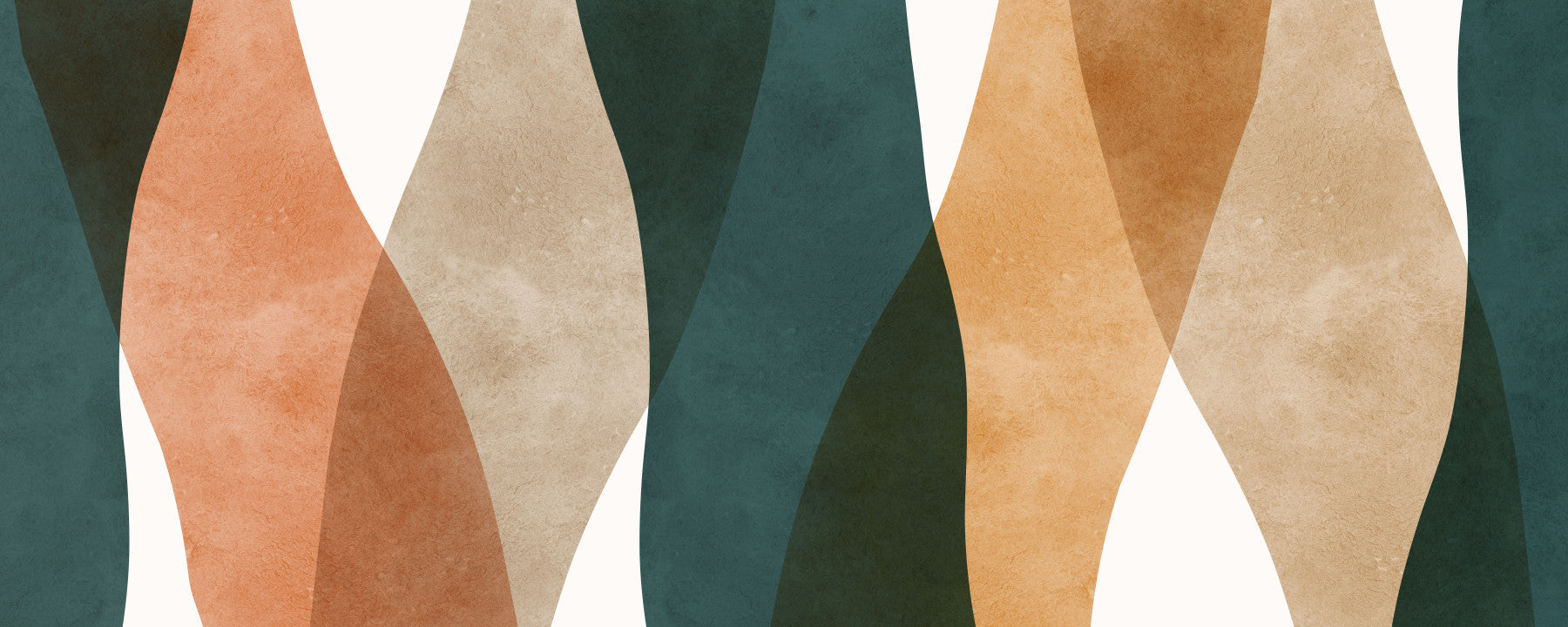 Create a relaxing atmosphere with this stylish wallpaper for walls. Gentle arcs in earthy hues of teal, beige, and rust intertwine to form a harmonious design. It brings a modern, artistic touch to bedrooms, living rooms, or dining rooms. The overlapping shapes and soft color tones add visual depth while remaining versatile. Complement the existing design or add an unexpected color. Elevate your home with this refined and calming wallpaper.