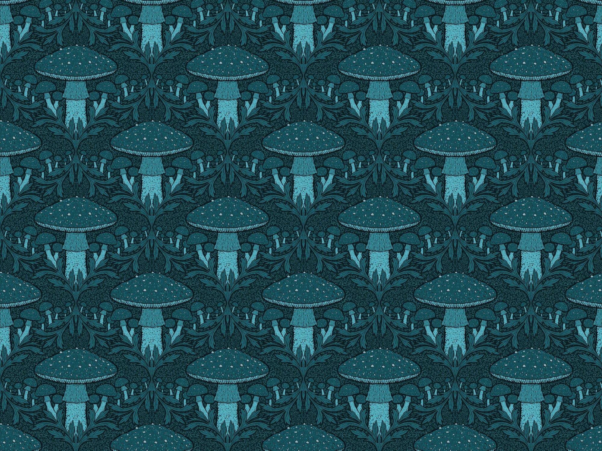 Nature-inspired heritage mushroom blue wallpaper for serene spaces.