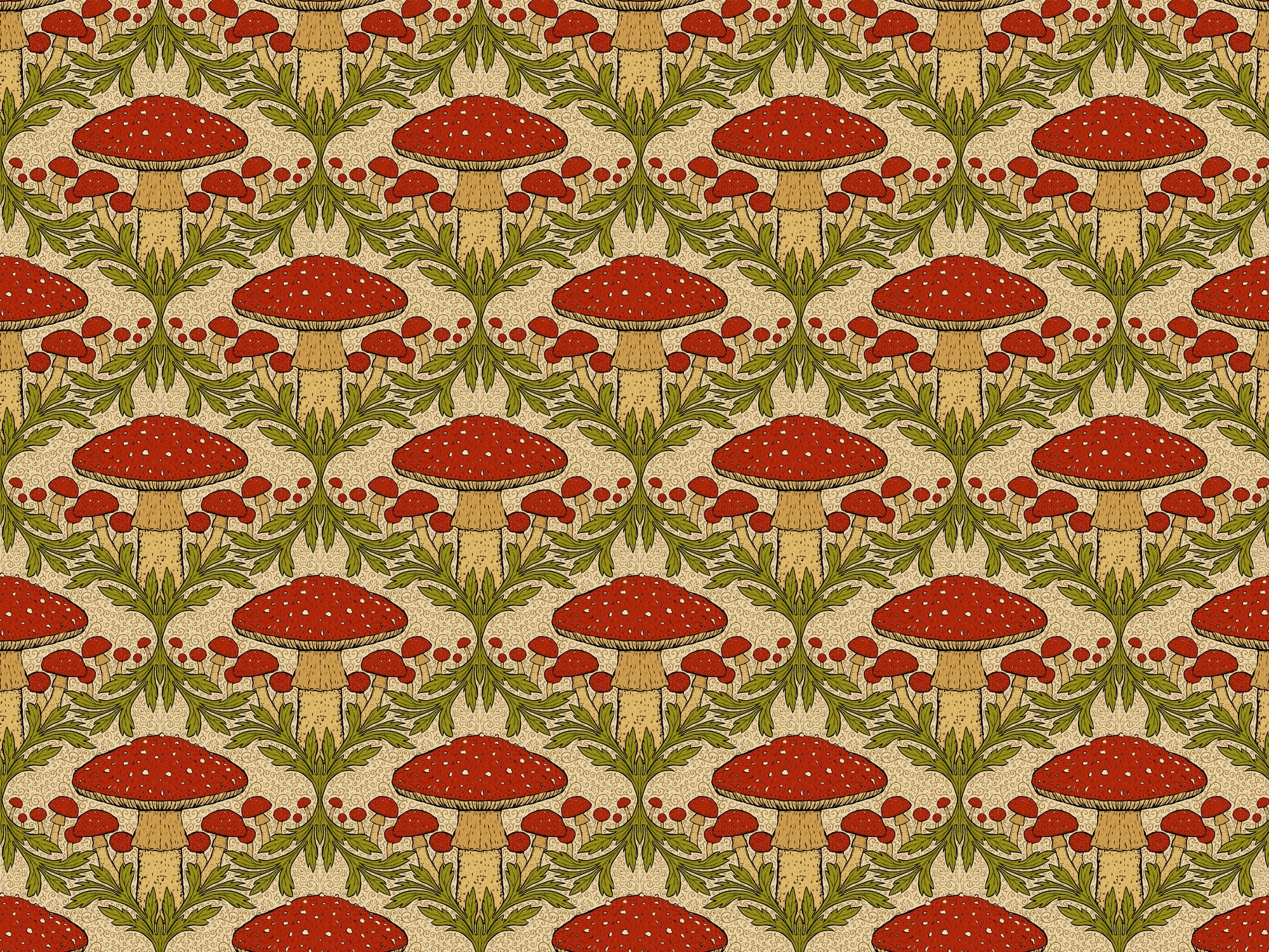 Nature-inspired heritage mushroom red wallpaper for rustic spaces.