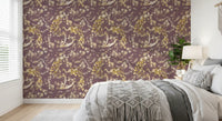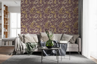 Immerse your living space in timeless elegance with our 'Heritage Plum Bird & Floral' wall covering. This exquisite design transports you to a serene, oriental garden, bathed in the soft glow of an eternal twilight. Delicate plum branches, adorned with a profusion of blossoming flowers, gracefully intertwine with majestic, stylized birds, their intricate golden plumage shimmering with an ethereal quality against a rich, soothing plum-hued backdrop. Each artistic detail, meticulously rendered with captivating precision, captures the inherent beauty of nature's artistry and intricate patterns. The harmonious blend of radiant golds and creamy whites creates a luxurious depth, inviting an atmosphere of tranquility and profound sophistication into any room. Perfect for crafting a breathtaking feature wall or enveloping an entire space in refined beauty, this design evokes a sense of historical grandeur and natural harmony. It offers a truly unique and enchanting pattern, elevating your interior with its calming and captivating presence.