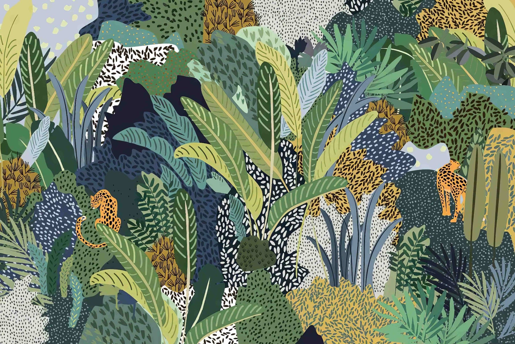 Refresh your children's bedrooms with our hidden jungle cat mural. This kids room wallpaper brings a slice of the jungle right into their space, featuring playful jungle themes with various foliage and hidden cats. It's perfect for sparking young imaginations and creating a lively atmosphere. Designed to withstand the playful activities of children, this wallpaper not only decorates their room but also serves as a vibrant backdrop for their learning and play. Its rich details help children engage with nature and stimulate creative storytelling right in their own rooms. Plus, it offers a visual treat that keeps the room looking fresh and exciting, fostering a love for wildlife and adventure.