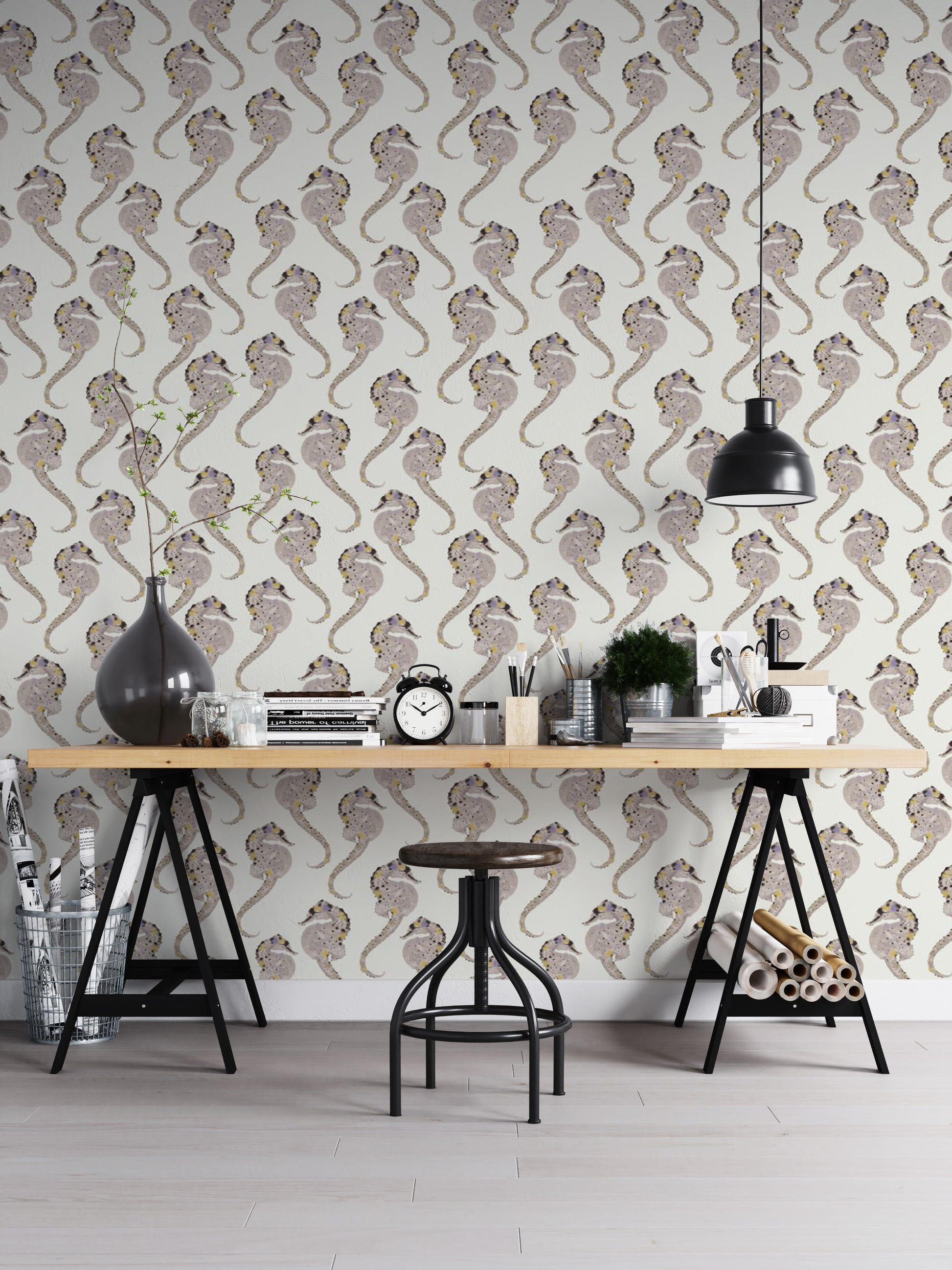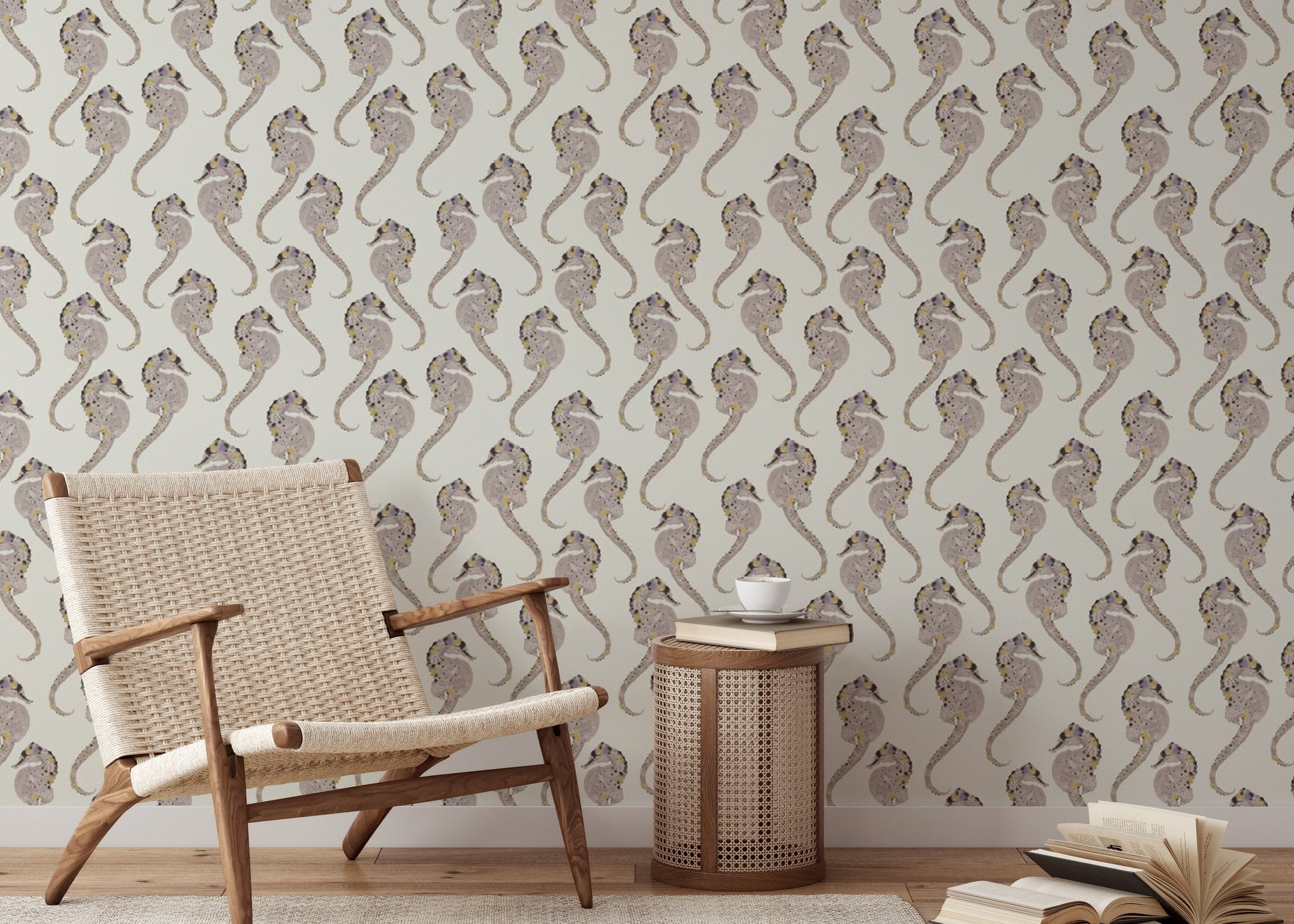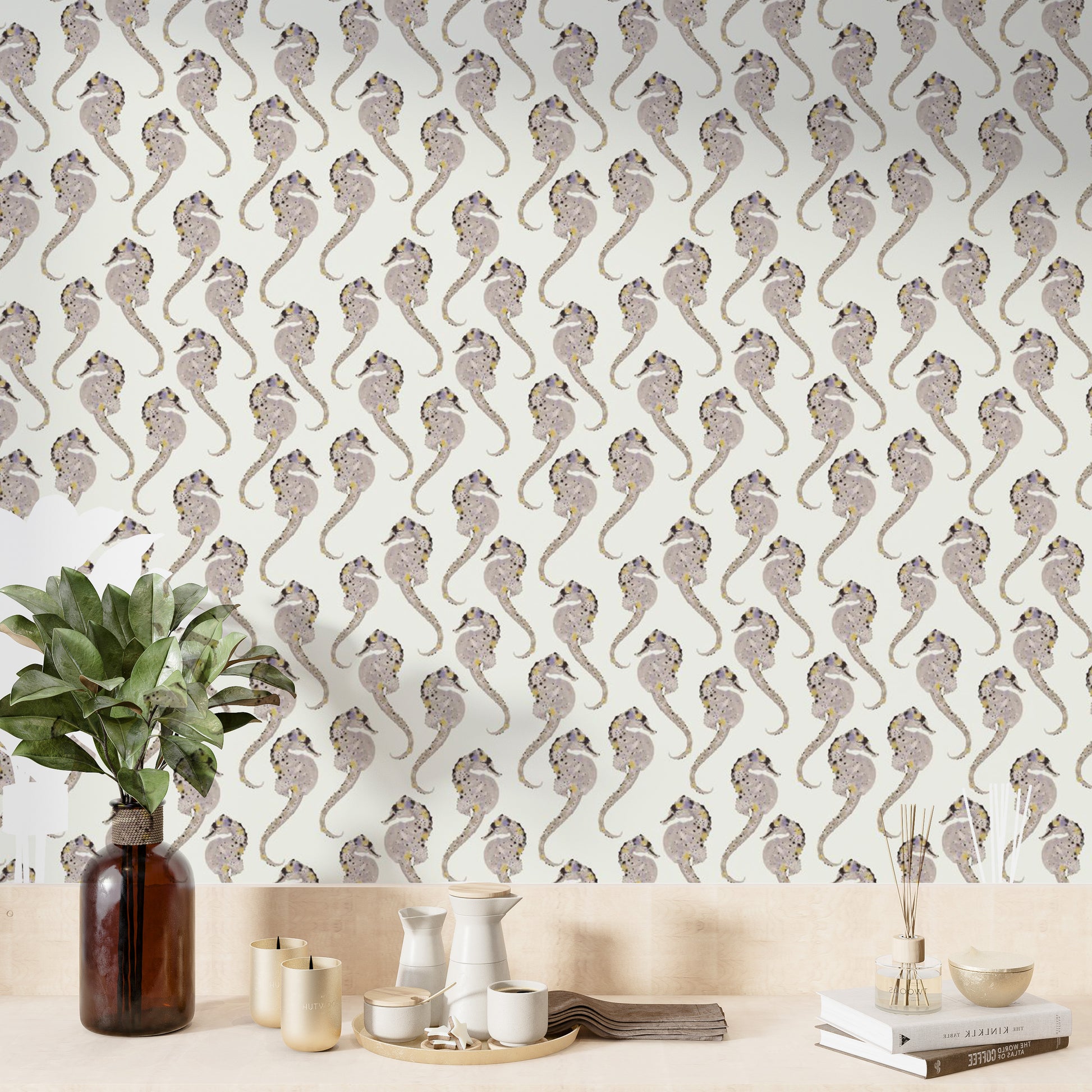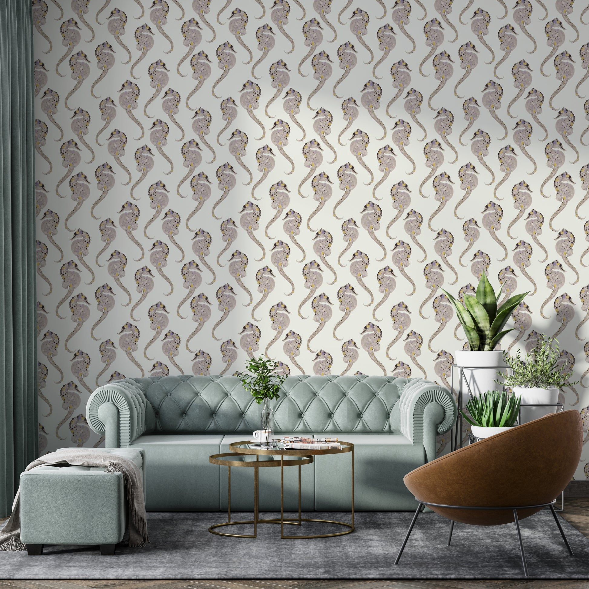Add a touch of coastal charm to your home with the Hippocampus wallpaper, a perfect blend of style and serenity. Featuring delicate seahorse patterns, this ocean-themed design exudes a sense of tranquility and whimsy. Ideal for those who love marine life wall decor or want to infuse their space with a nautical wallpaper vibe, its subtle colors blend effortlessly with various styles. Whether you're styling a beachside retreat or simply dreaming of the sea, this Hippocampus wall art brings a refreshing, underwater feel to any room.