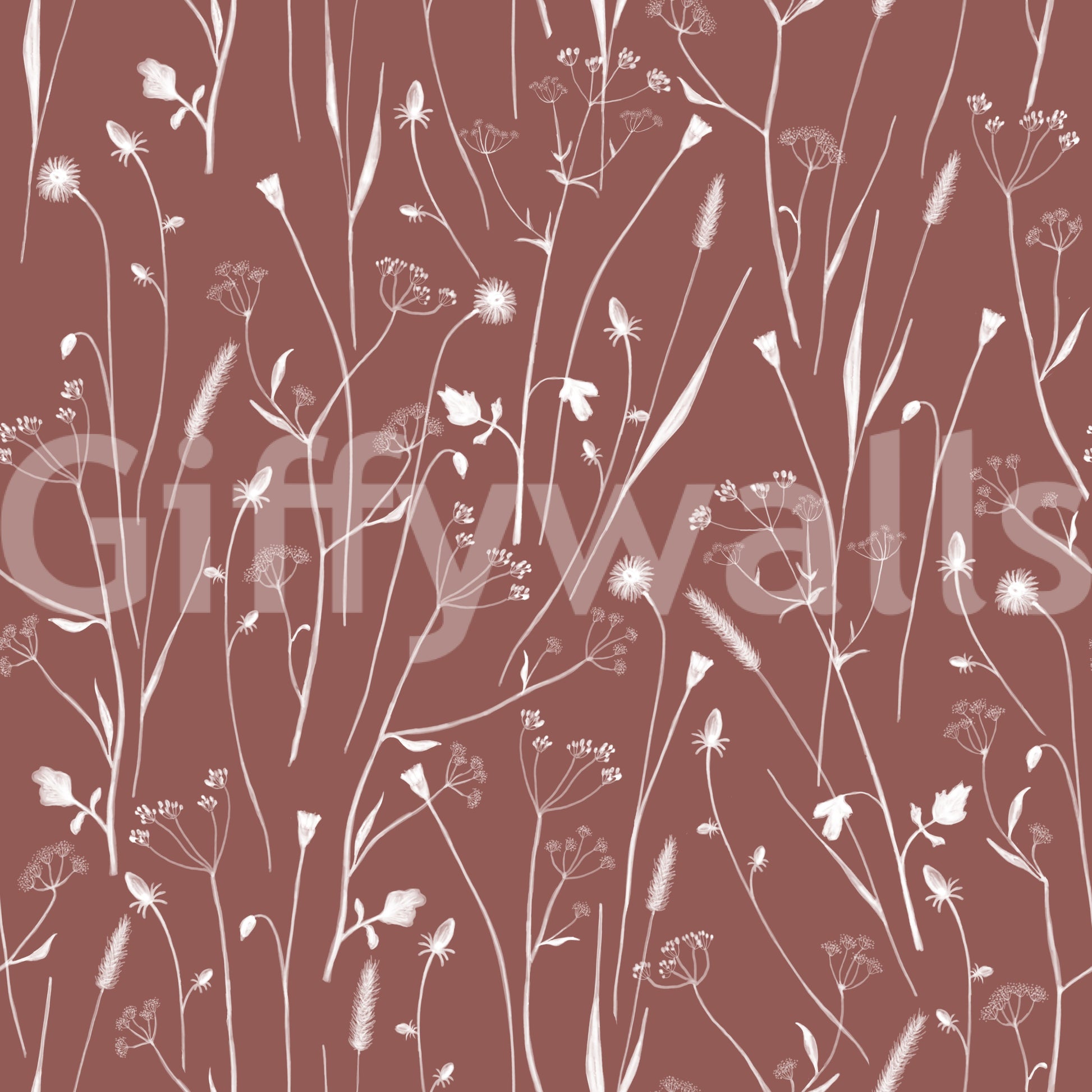 Embrace the comforting embrace of nature with 'Homeland Floral Terracotta'. This design evokes a sense of rustic charm and understated elegance, transforming any room into a warm and inviting sanctuary. Delicate, hand-drawn floral silhouettes in soft white dance across a rich terracotta backdrop, reminiscent of sun-baked earth and blooming meadows. The intricate details of wildflowers, grasses and seed heads create a captivating visual texture, adding depth and dimension to your walls. Perfect for creating a serene bedroom retreat or a cosy living space, this wall décor brings the beauty of the countryside indoors, fostering a feeling of peace, tranquility and connection to the natural world. This versatile design pairs effortlessly with natural materials and earthy tones, making it an ideal choice for both contemporary and traditional interiors.