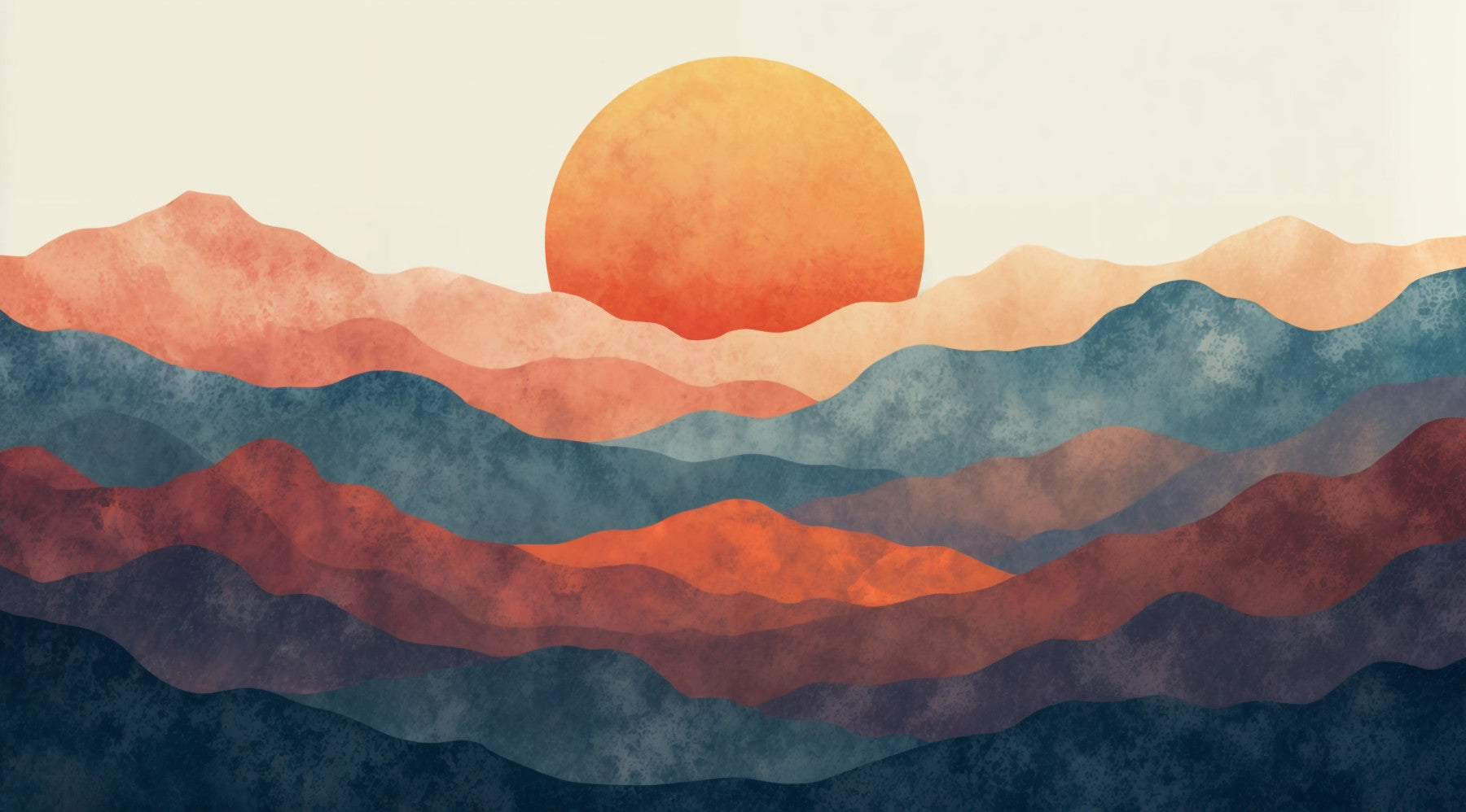 Capture a serene sunrise with this abstract mountain scene. The gradient of oranges, reds, and blues creates a tranquil landscape. This wallpaper for walls is a perfect addition to bedrooms, living rooms, or offices, bringing a touch of nature indoors. The soft colors and layered design create a calming atmosphere, ideal for spaces where relaxation is key. This design complements modern and minimalist interiors.