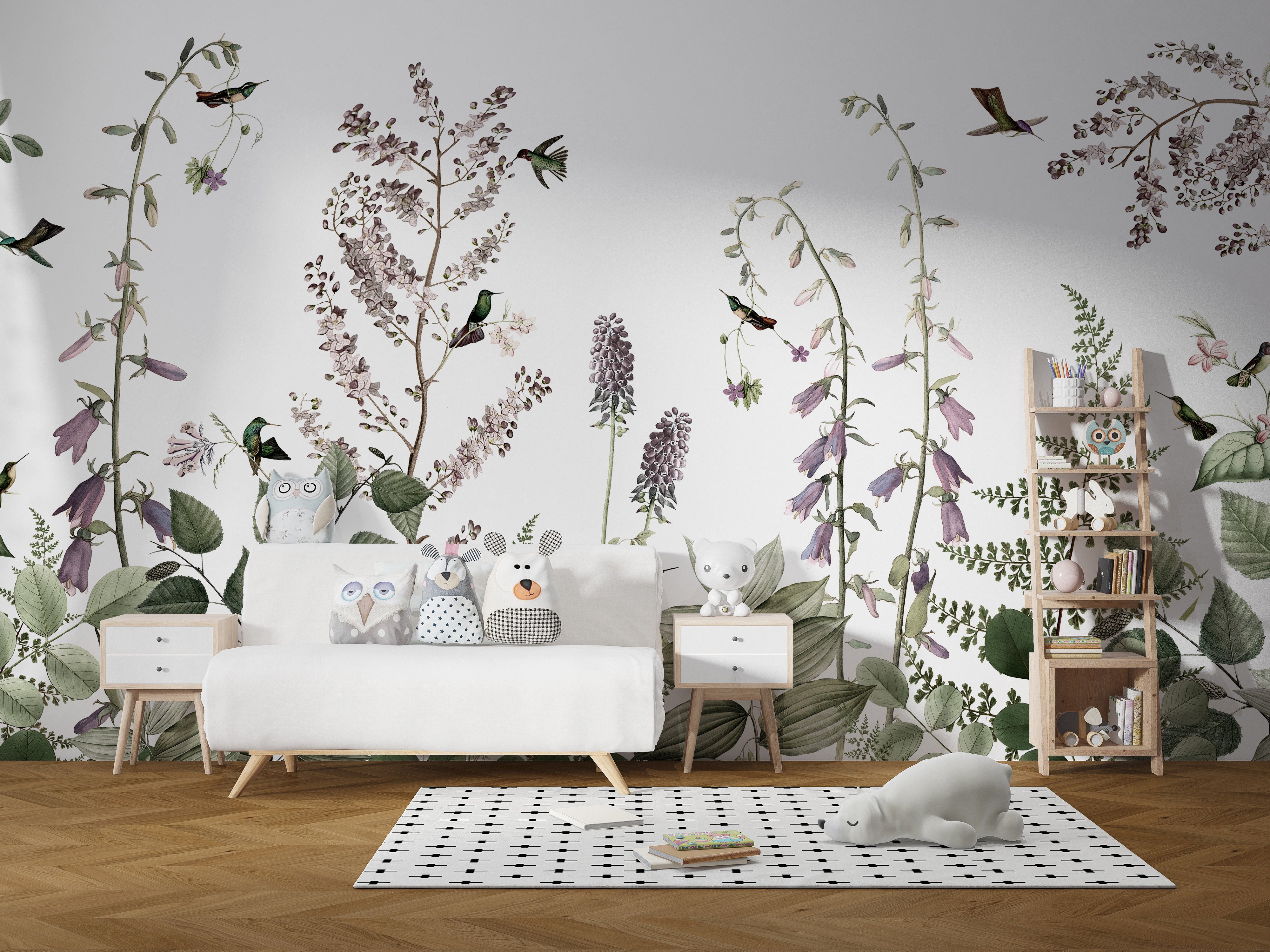 Discover the enchanting world of the hummingbird hedge botanical wall mural. This botanical mural showcases a delightful array of hummingbirds amidst beautifully detailed plants and flowers. Each element is intricately designed to create a vibrant and lively atmosphere. Ideal for any room, this wallpaper brings a burst of natural beauty indoors. Whether for a feature wall or a complete room makeover, the hummingbird hedge mural provides an exquisite backdrop that inspires and captivates. Enjoy the elegance and charm of nature every day, enhancing your space with the delicate beauty of hummingbirds and botanical elements.