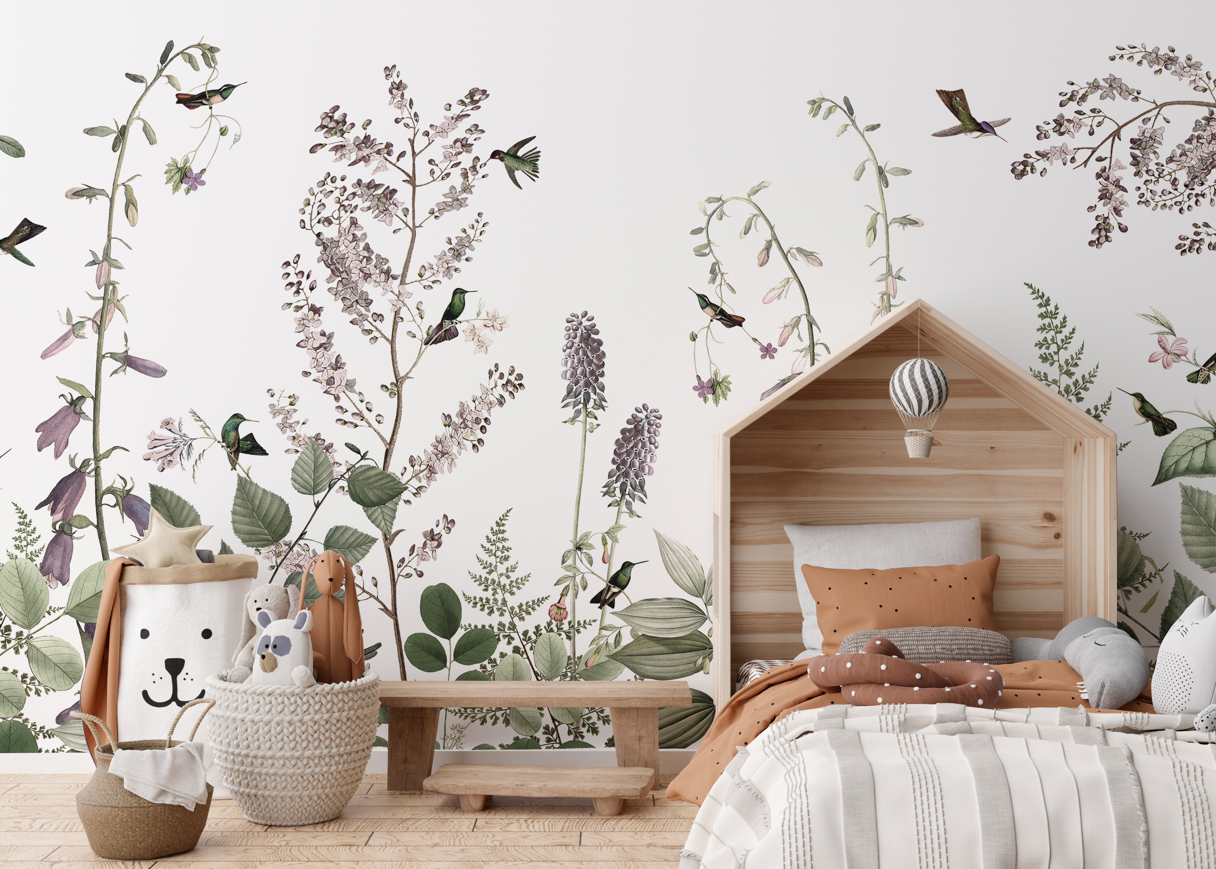 Botanical Hummingbird Hedge mural wallpaper for homes