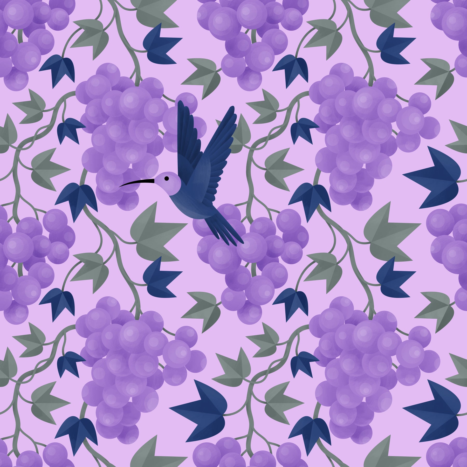 The Hummingbird in Grapes Wallpaper features a serene mix of fluttering motion and natural detail. A graceful hummingbird dances among clusters of purple grapes and soft green leaves, creating a mural wallpaper that's both gentle and expressive. This pattern brings a soothing presence to kitchens, breakfast areas, or cozy nooks. The balanced palette of violets, blues, and soft greens creates a refreshing feel without being overpowering. A great wall mural for those who love nature with a hint of charm, this wallpaper for walls adds quiet movement and subtle beauty to your everyday spaces.