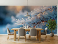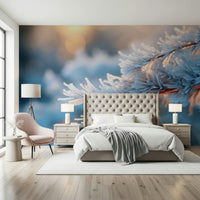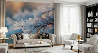 Transform your room with this gorgeous design featuring frosty pine needles. The icy texture of this wallpaper for walls provides a sense of cool wonder. Glistening details give depth to the design. It will liven up the interiors in living rooms or any space where you want to create a serene, nature-inspired look. The backdrop is soft, and the cool colour tones create a calming effect.
