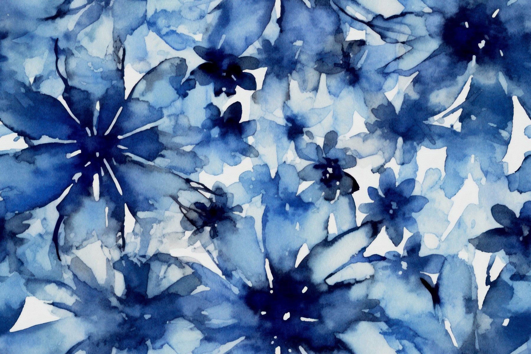 Immerse yourself in the serene beauty of 'Indigo Bloom,' a watercolor wallpaper that captures the essence of tranquility. Loose brushstrokes create a dreamy effect, depicting a profusion of stylized flowers in varying shades of blue, from light cerulean to deep indigo. The abstract floral design feels both modern and classic, offering a calming atmosphere perfect for bedrooms, living rooms, or any space seeking a touch of sophisticated elegance. The watercolor's soft washes and delicate transitions create a sense of depth and movement, ensuring a visually engaging yet peaceful experience. This wallpaper is a testament to the art of watercolor, bringing nature's gentle beauty indoors.
