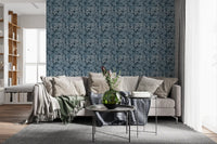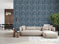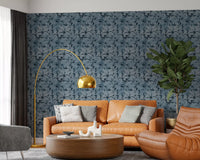 Transform your interior with this striking botanical wallpaper for walls. Its design features a captivating array of layered tropical leaves, creating a sense of depth and organic movement across your space. The nuanced texture within each leaf shape adds a tactile dimension, enriching the visual appeal. A sophisticated monochromatic palette of muted blues and deep indigo imbues rooms with calm elegance. This modern pattern enhances living rooms, bedrooms, or dining areas by introducing a serene, natural aesthetic. It also creates a tranquil atmosphere in a home office or a luxurious feel in a bathroom. The subtle yet intricate foliage design offers a timeless backdrop, complementing various decor styles.