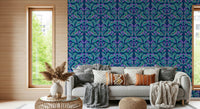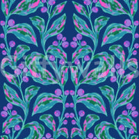 Transform your living space with this enchanting floral design. Featuring watercolour-style leaves and striking violet berries against a deep indigo backdrop, this wallpaper for walls adds a touch of modern elegance to any room. The painterly texture and symmetrical composition generate a sense of calm and sophistication. The rich colour palette works well in bedrooms, dining rooms, or hallways, creating a tranquil yet stylish atmosphere. Make a statement with this captivating botanical design and infuse your home with natural beauty.