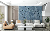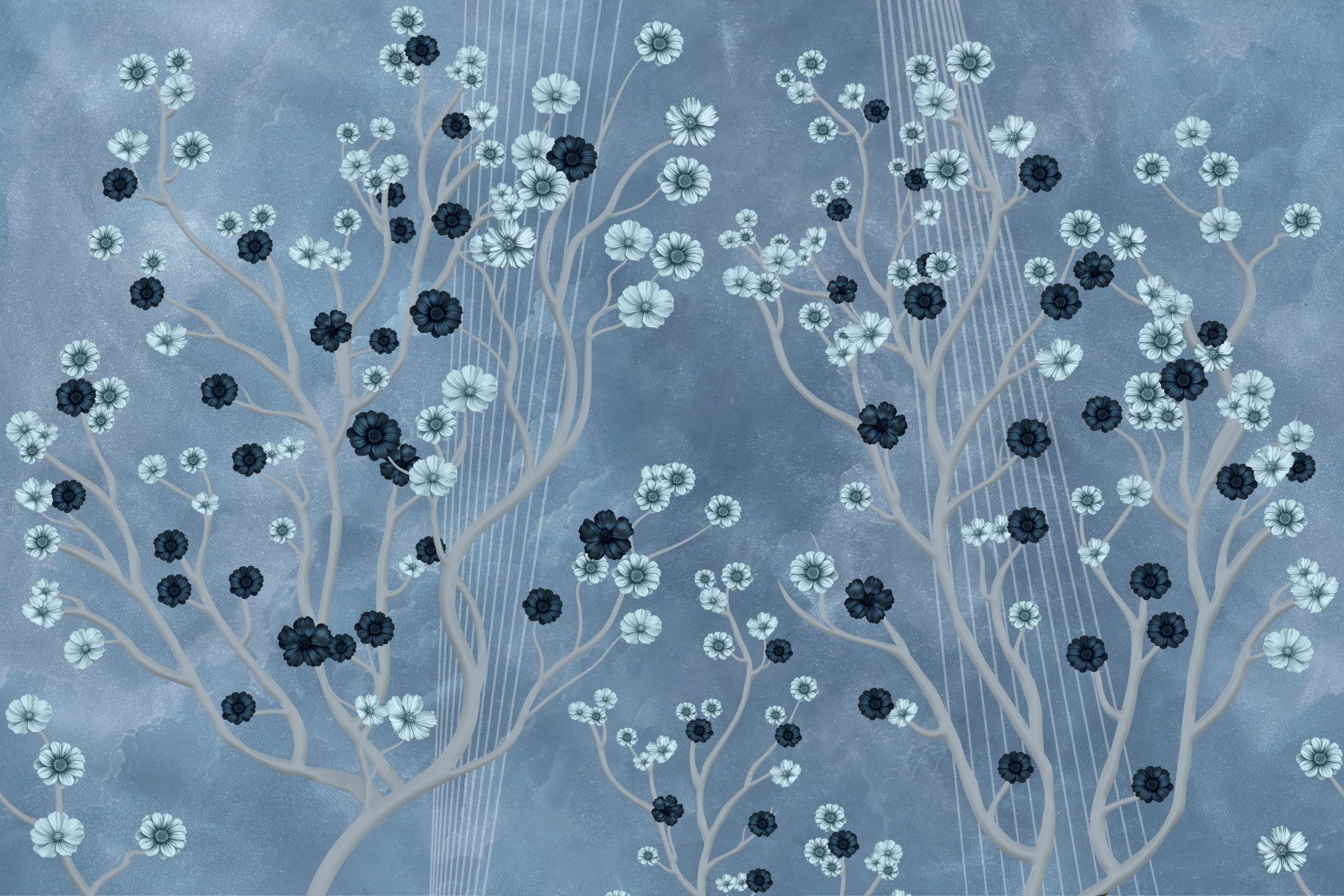 Elevate your home décor with this stylish wallpaper for walls. Featuring delicate trees with blossoms in shades of blue and white, the design invokes a peaceful canopy. The textured backdrop and clean vertical line details add depth and sophistication to any room. This wallpaper finds perfect harmony in bedrooms, living spaces, and hallways, effortlessly pairing with various décor styles, from modern to traditional. The soothing colour palette creates an atmosphere of tranquility, enhancing relaxation and comfort. The floral motif adds a touch of nature-inspired elegance, creating a serene and inviting ambience within your home.