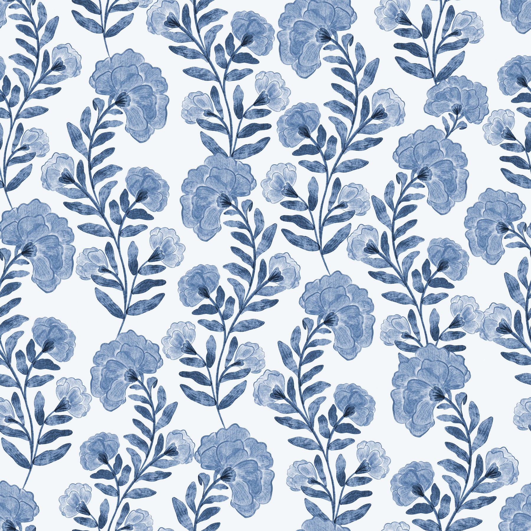 Bring the calm of a botanical garden to your home with this serene wallpaper for walls. Its indigo-blue floral design creates a peaceful vibe. The pattern works wonders in bedrooms, living rooms, or hallways. Let this wallpaper enhance your space, turning it into a tranquil retreat. Its simple yet elegant design complements both modern and classic interiors.
