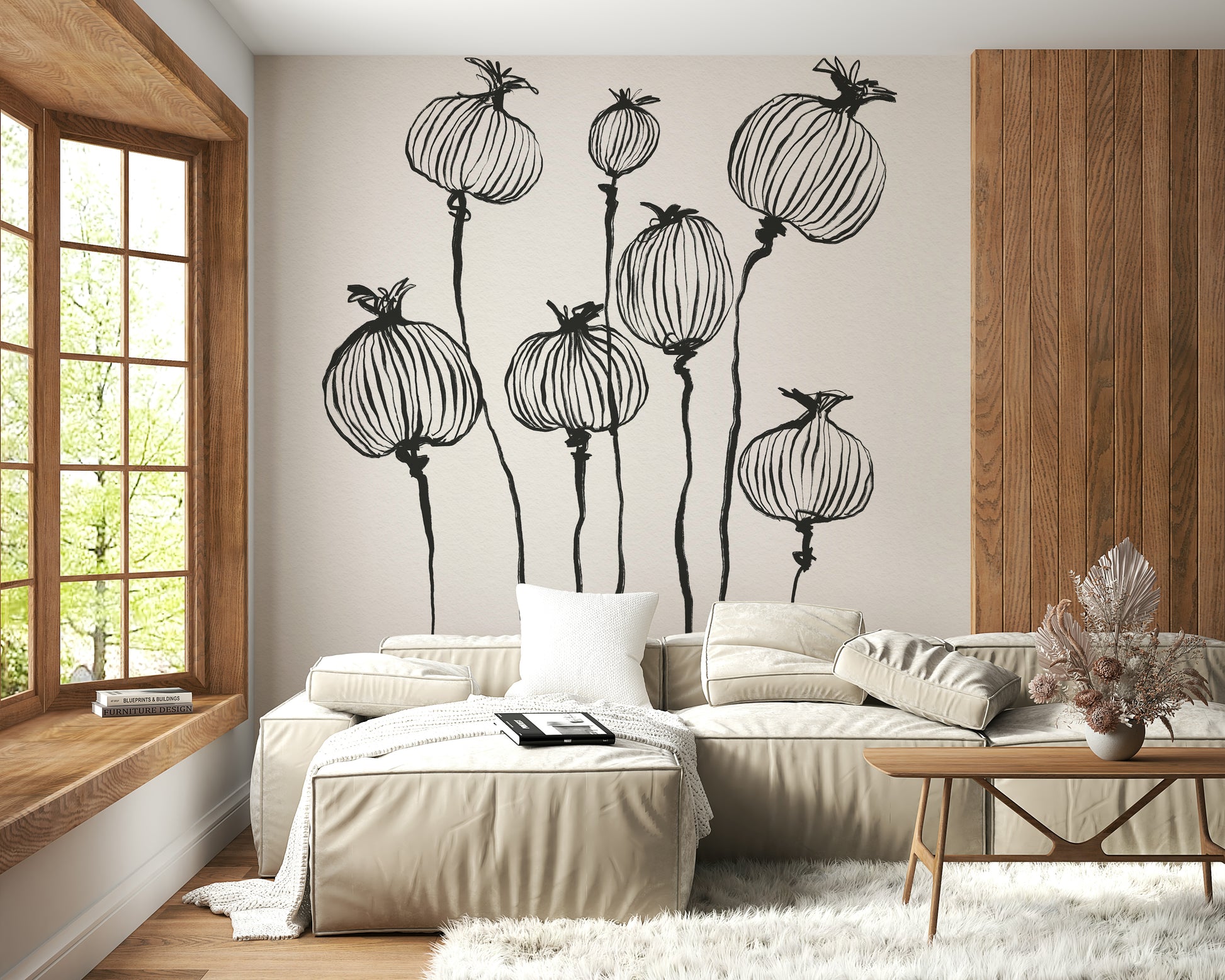 Ink Poppy Pods Wall Mural