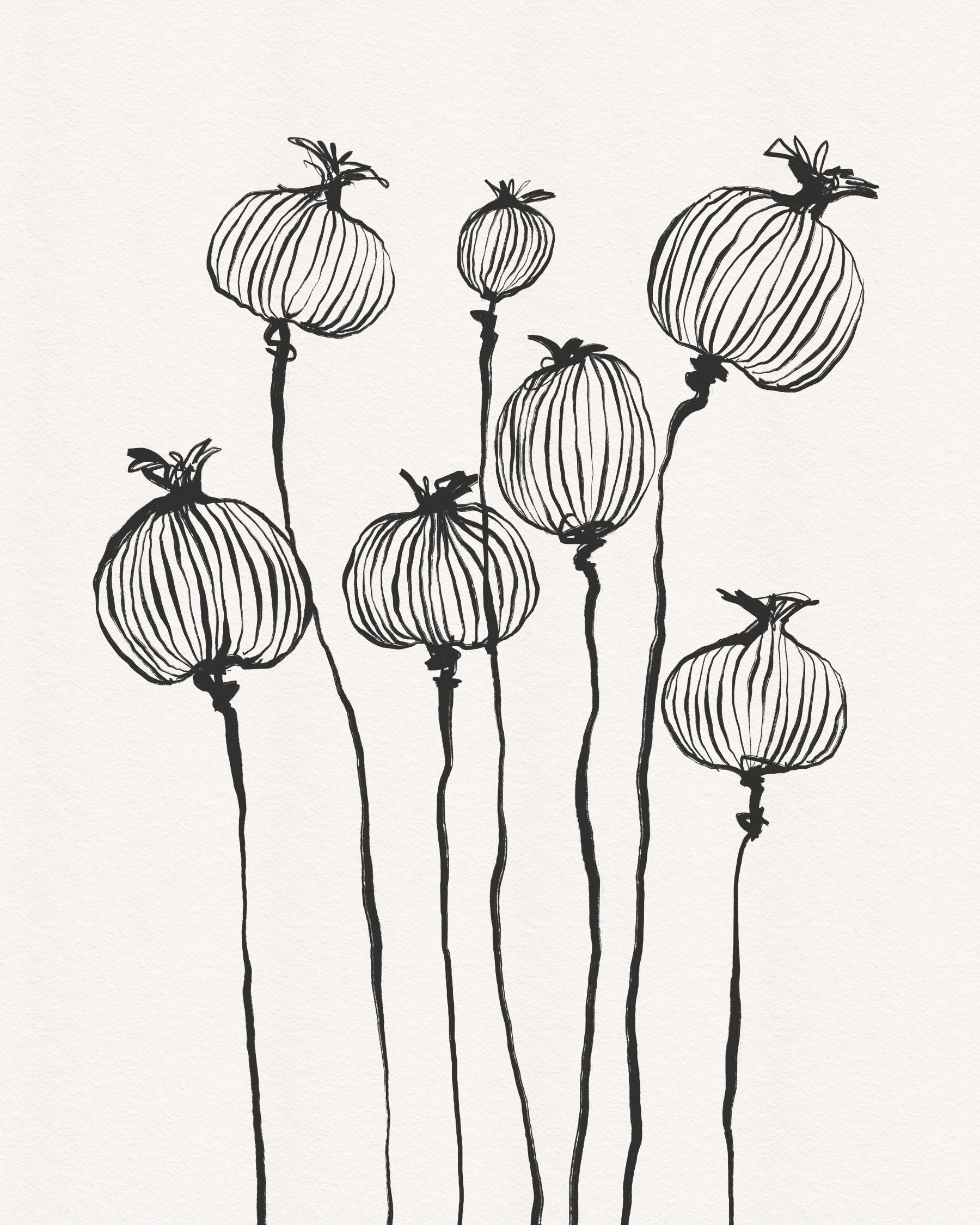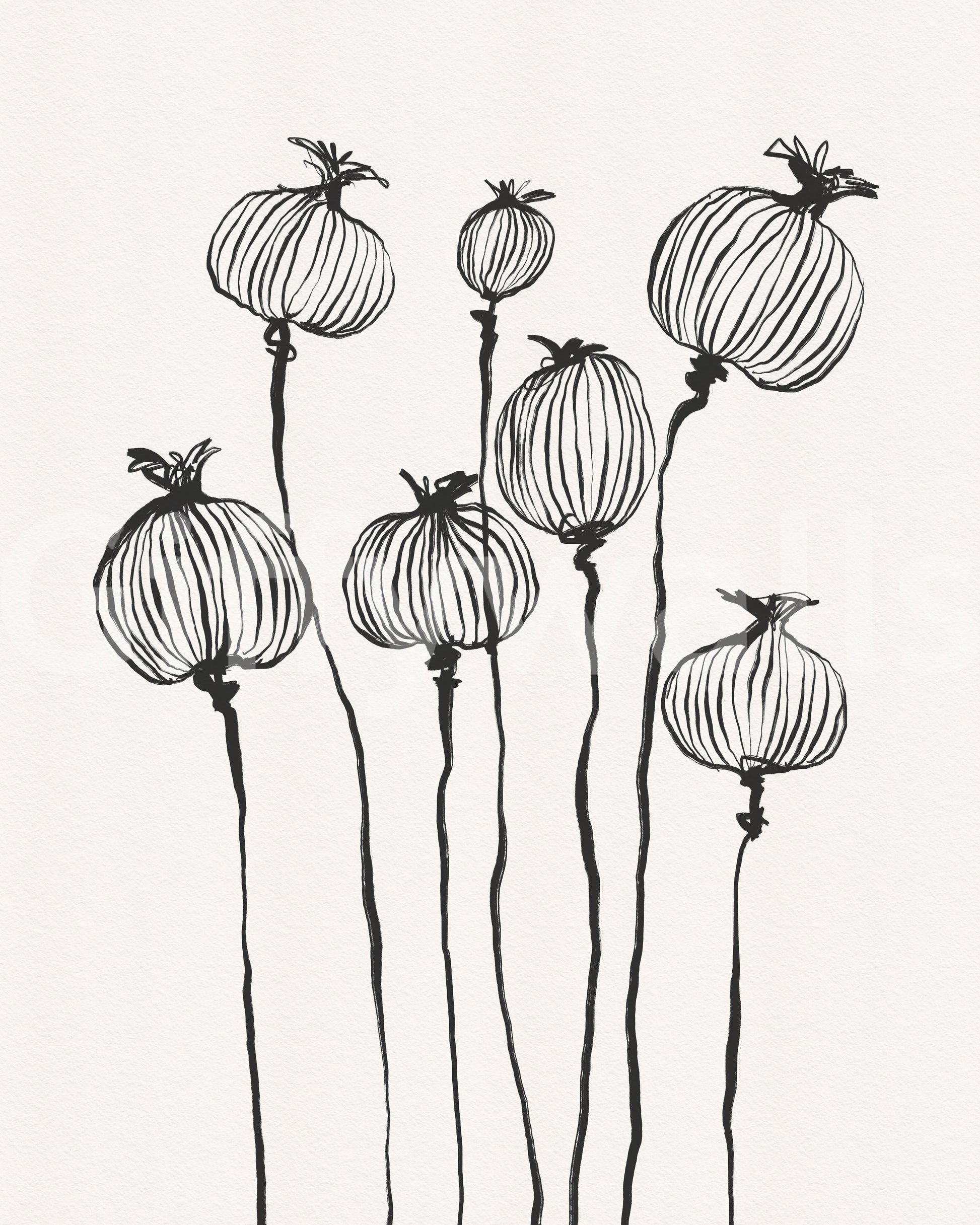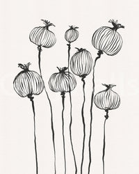 Embrace the understated elegance of 'Ink Poppy Pods,' a striking wall décor accent that transforms any room into a haven of minimalist beauty. This design showcases delicate poppy seed pods rendered in expressive ink strokes, capturing their essence with a graceful simplicity. The slender stems rise with a fluid motion, supporting the meticulously detailed pods, each line contributing to a compelling visual texture. The monochrome palette lends a timeless sophistication, making it a versatile addition to various interior styles, from modern to bohemian. 'Ink Poppy Pods' invites tranquillity and a subtle touch of nature into your home, making it a perfect statement piece for those who appreciate the beauty in simplicity and the power of artistic expression. Elevate your space with this evocative design that speaks volumes with its refined aesthetic.