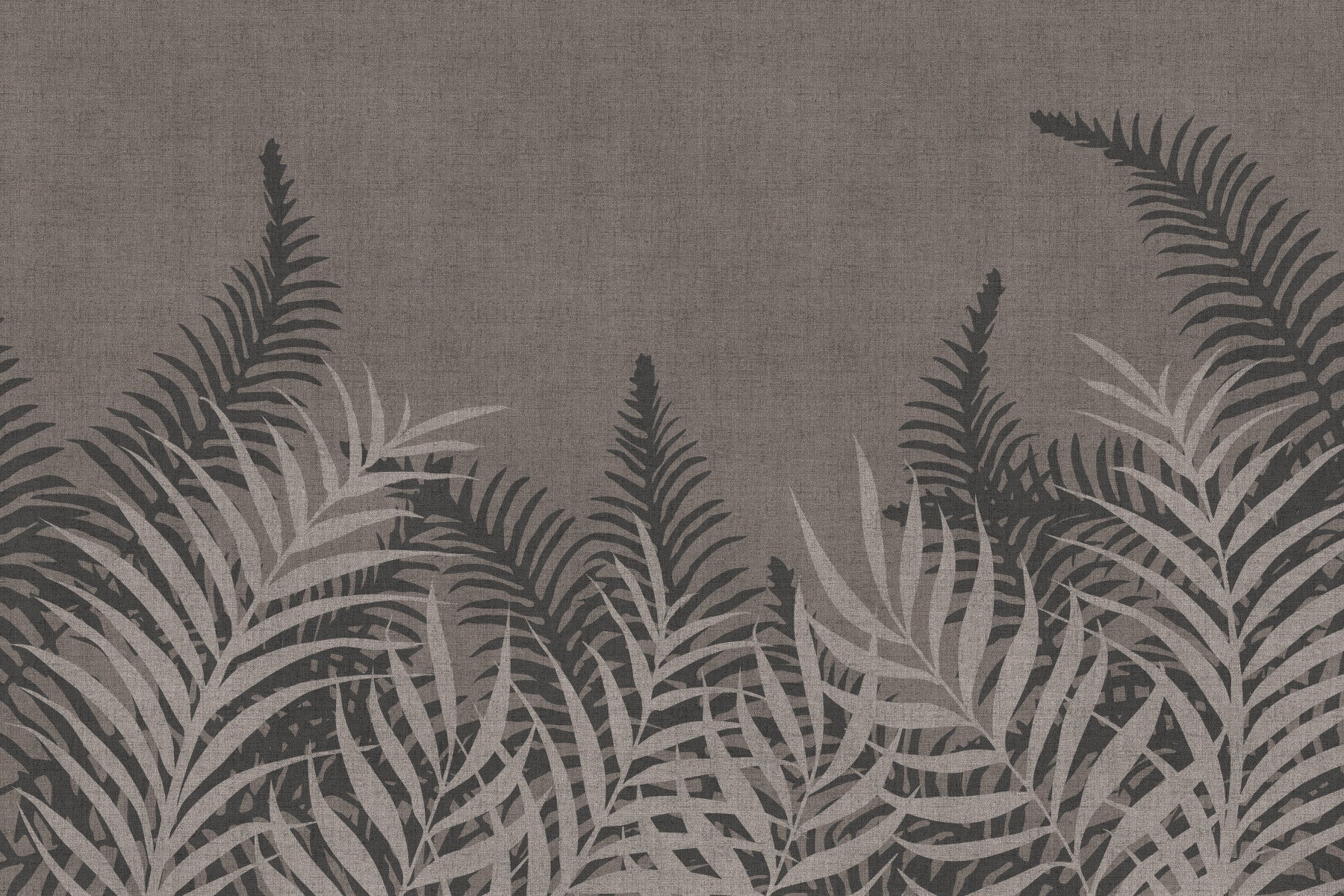 Monochrome Taupe wall mural, overlapping palms, serene backdrop.