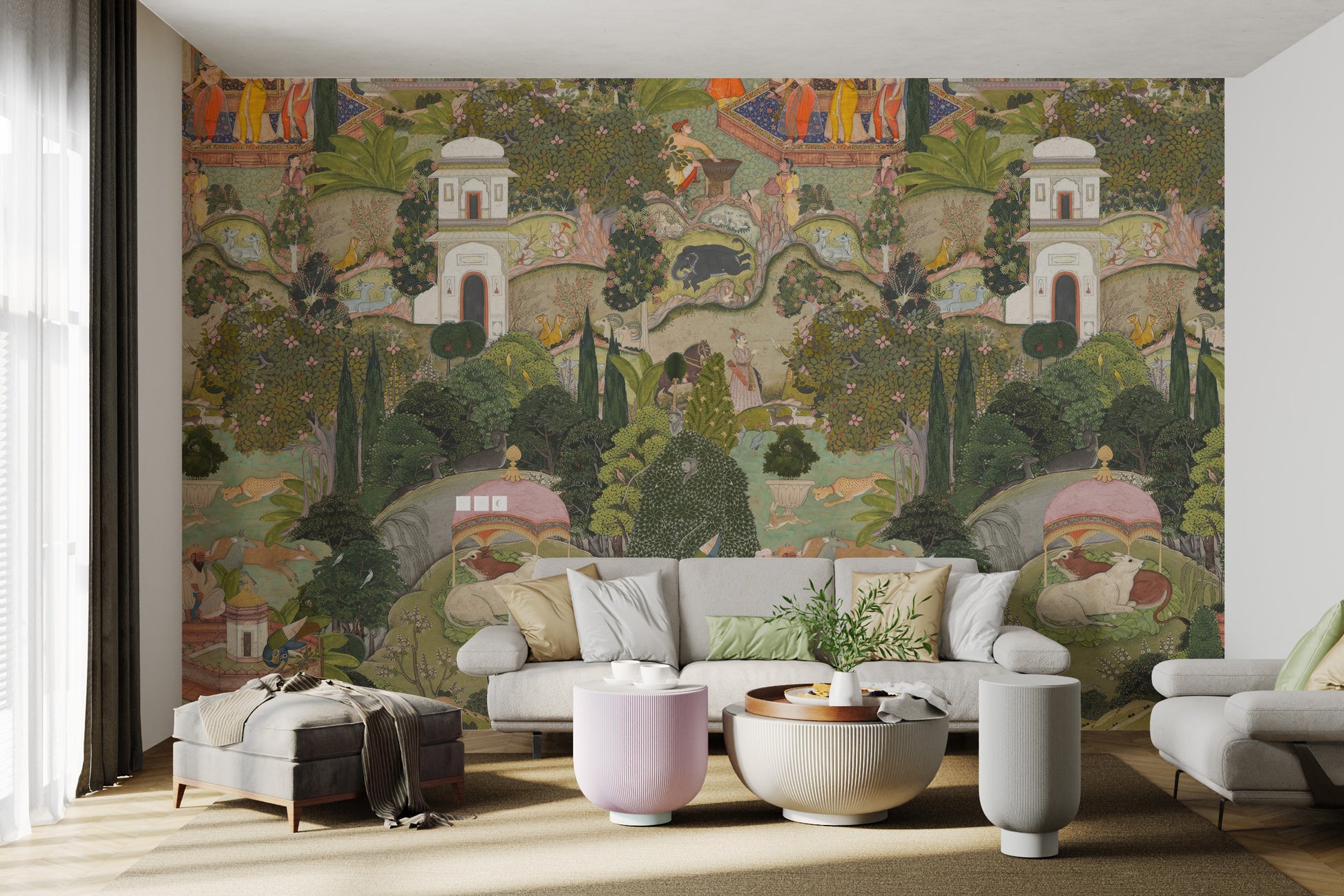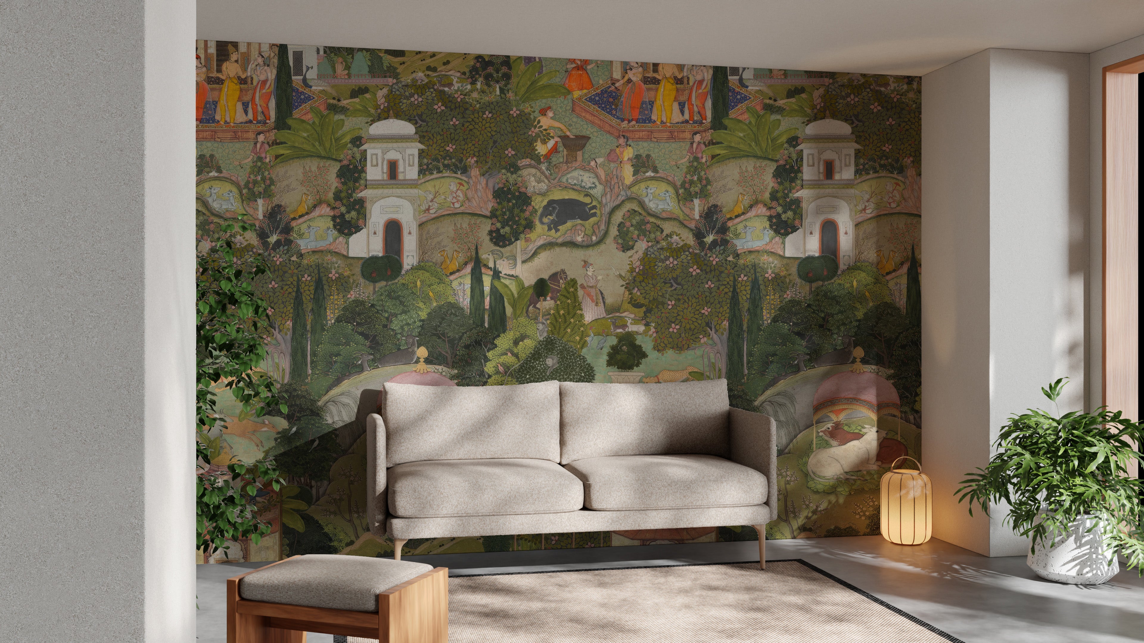 Transform your space with our Jaipur garden wallpaper, inspired by the rich Indian royal heritage and the natural beauty of Rajasthani art. Featuring intricate mughal-inspired motifs, botanical designs, and floral patterns, this wallpaper brings the elegance of Jaipur palaces into your home. The soft pink city hues blend seamlessly with earthy tones and terracotta shades, while detailed hand-painted murals and block prints capture the essence of ancient craftsmanship. Embellished with iconic peacock motifs, elephants, and ornamental patterns, this wallpaper celebrates Indian mythology and folk art. Perfect for both traditional and modern Indian decor. Its versatile design fuses heritage with a contemporary ethnic blend, creating a stunning wallscape. Whether adorning a feature wall or an entire room, this piece brings the opulence and grandeur of Jaipur’s gardens into any space.