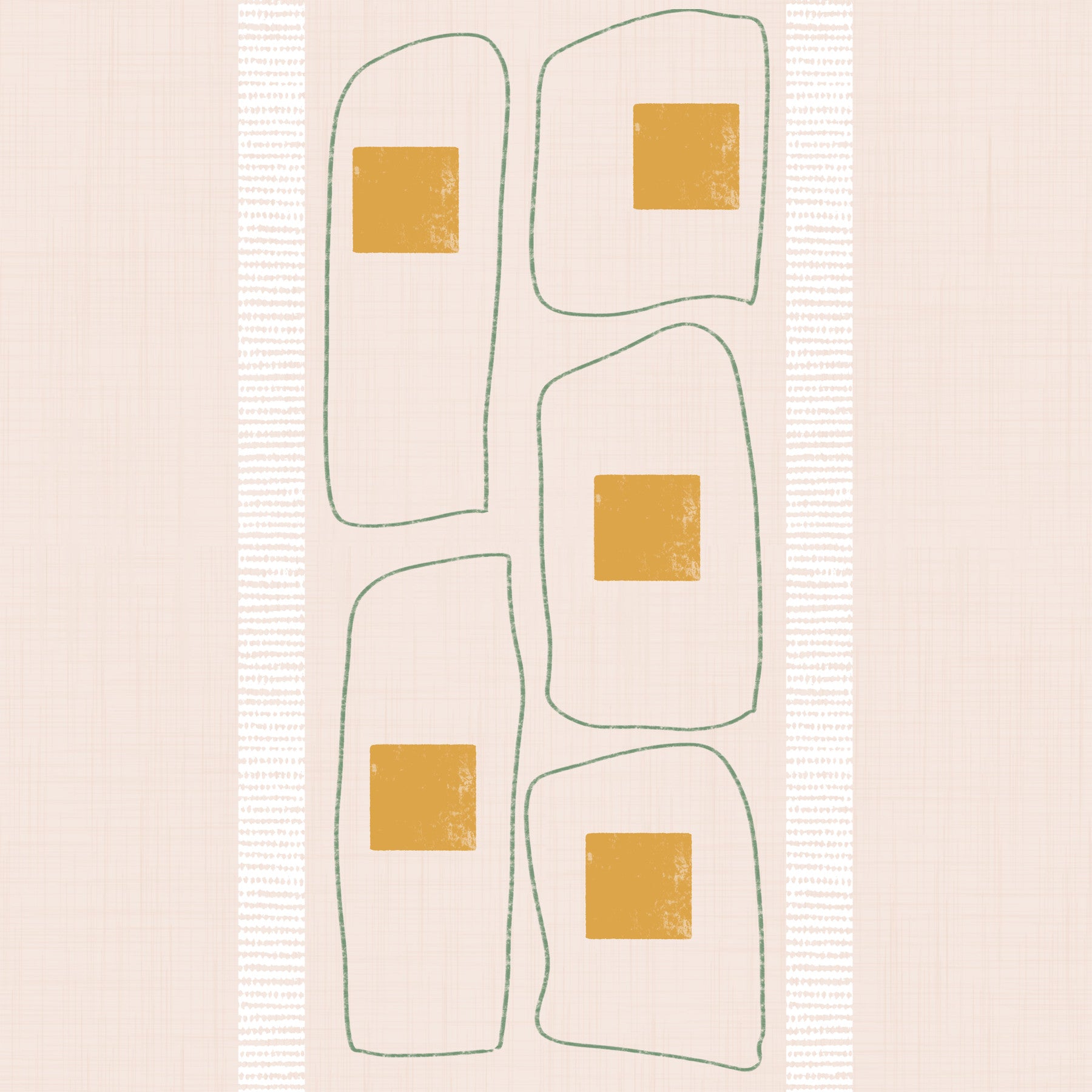 Embrace minimalist serenity with this 'Japandi Frame Lines Eggshell' wallpaper. Subtle sage green lines frame soft, eggshell-colored shapes punctuated by warm mustard yellow squares. The design evokes a sense of calm and balance, perfectly capturing the essence of Japandi style. Vertical dotted lines add a textural element, enhancing the overall soothing aesthetic. This wallpaper is ideal for creating a tranquil and sophisticated atmosphere in any space, adding a touch of understated elegance to your digital devices.