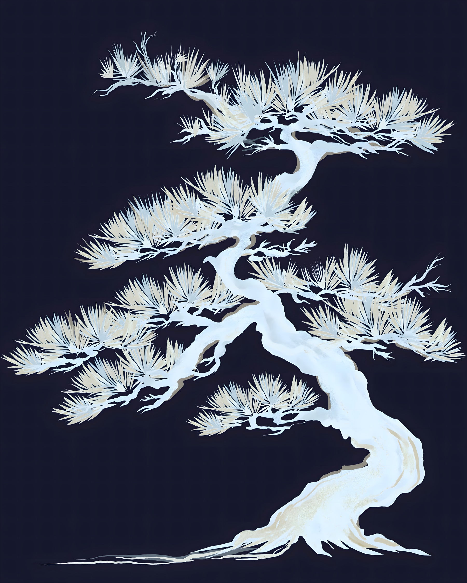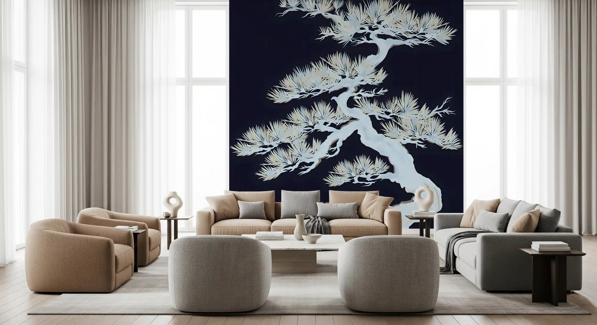 Japanese Ethereal Matsu Pine Silhouette Wall Mural