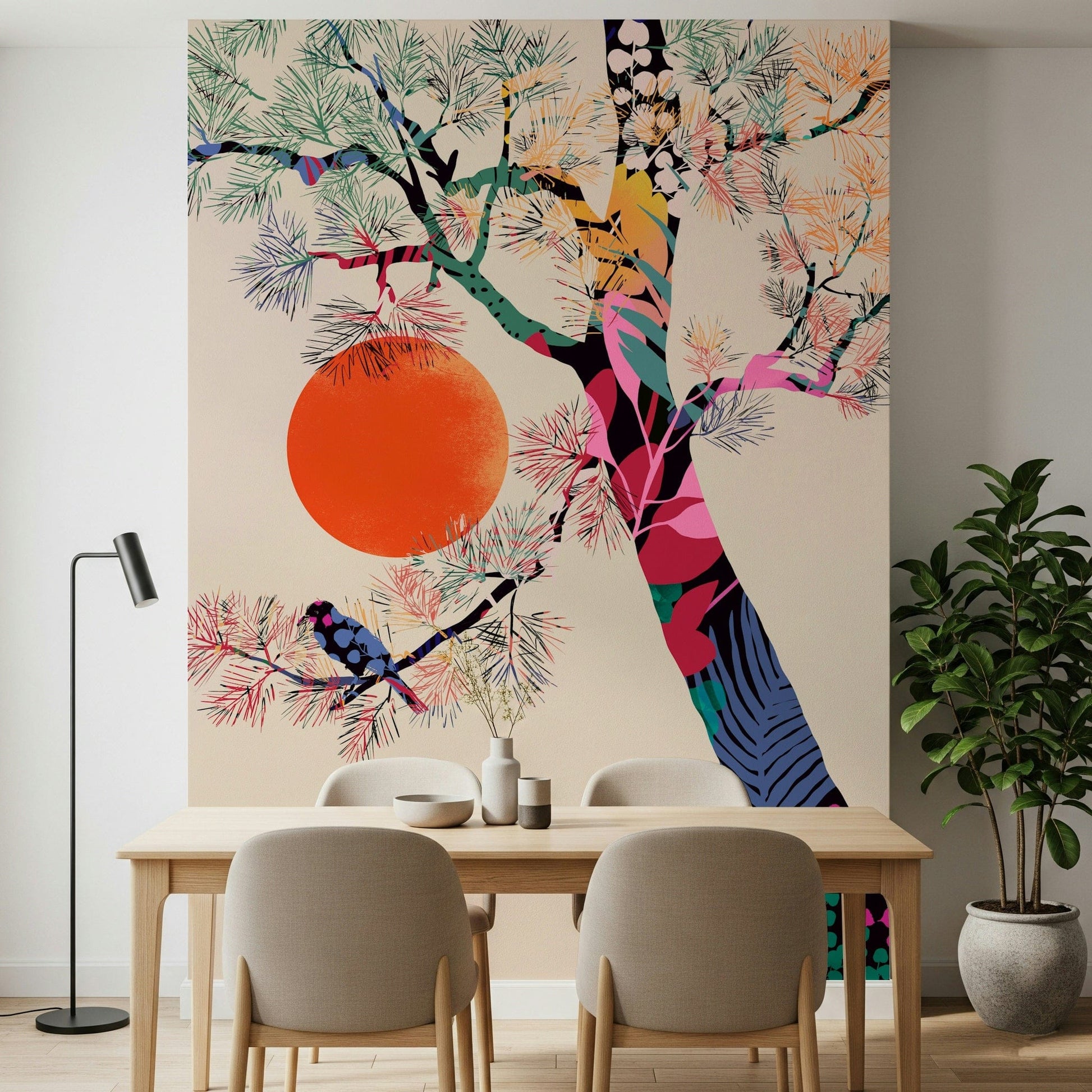 Transform your space with the calming beauty of nature through this vibrant Japanese Summer design. This wallpaper brings a touch of tranquility with its intricate depiction of a serene tree against a radiant sun. Perfect for creating an inviting atmosphere. This design not only enhances your home decor but also serves as a conversation starter, inspiring admiration with its unique and colourful artistry