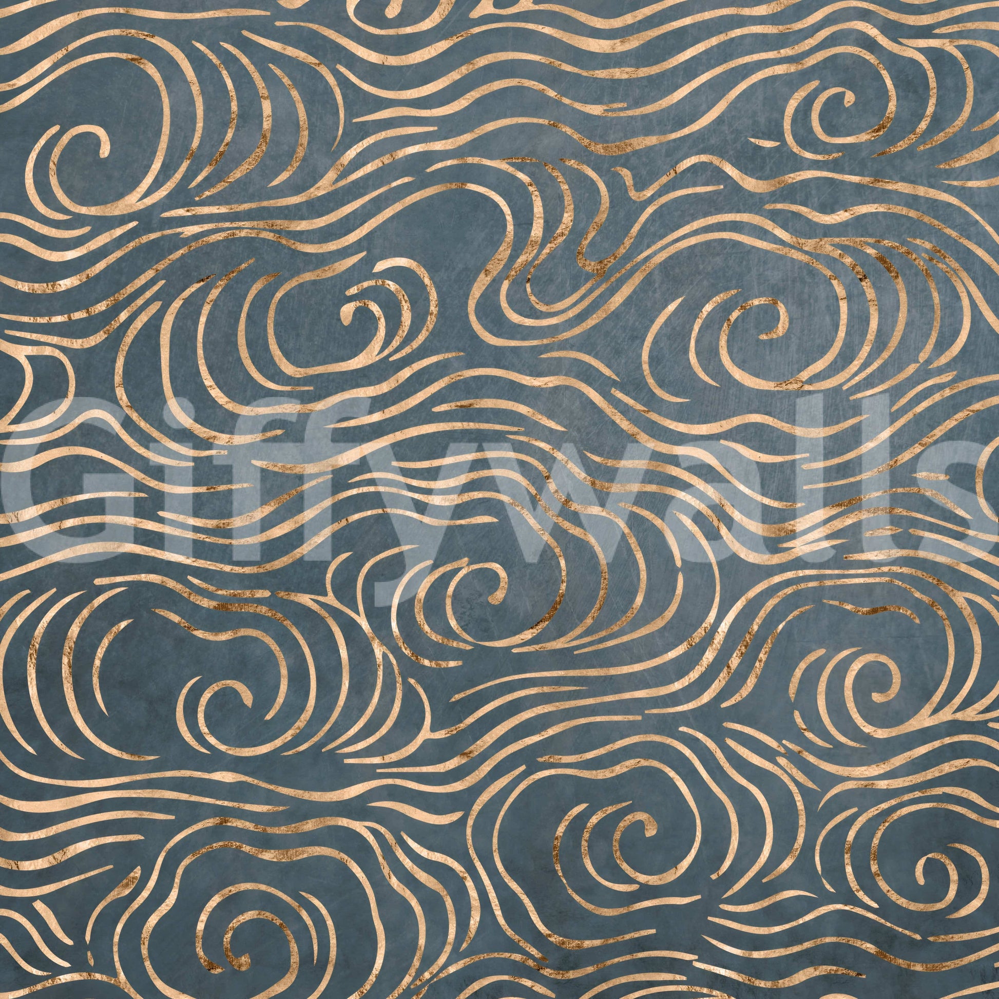 Japanese Waves - Petrol and Gold Wall Mural