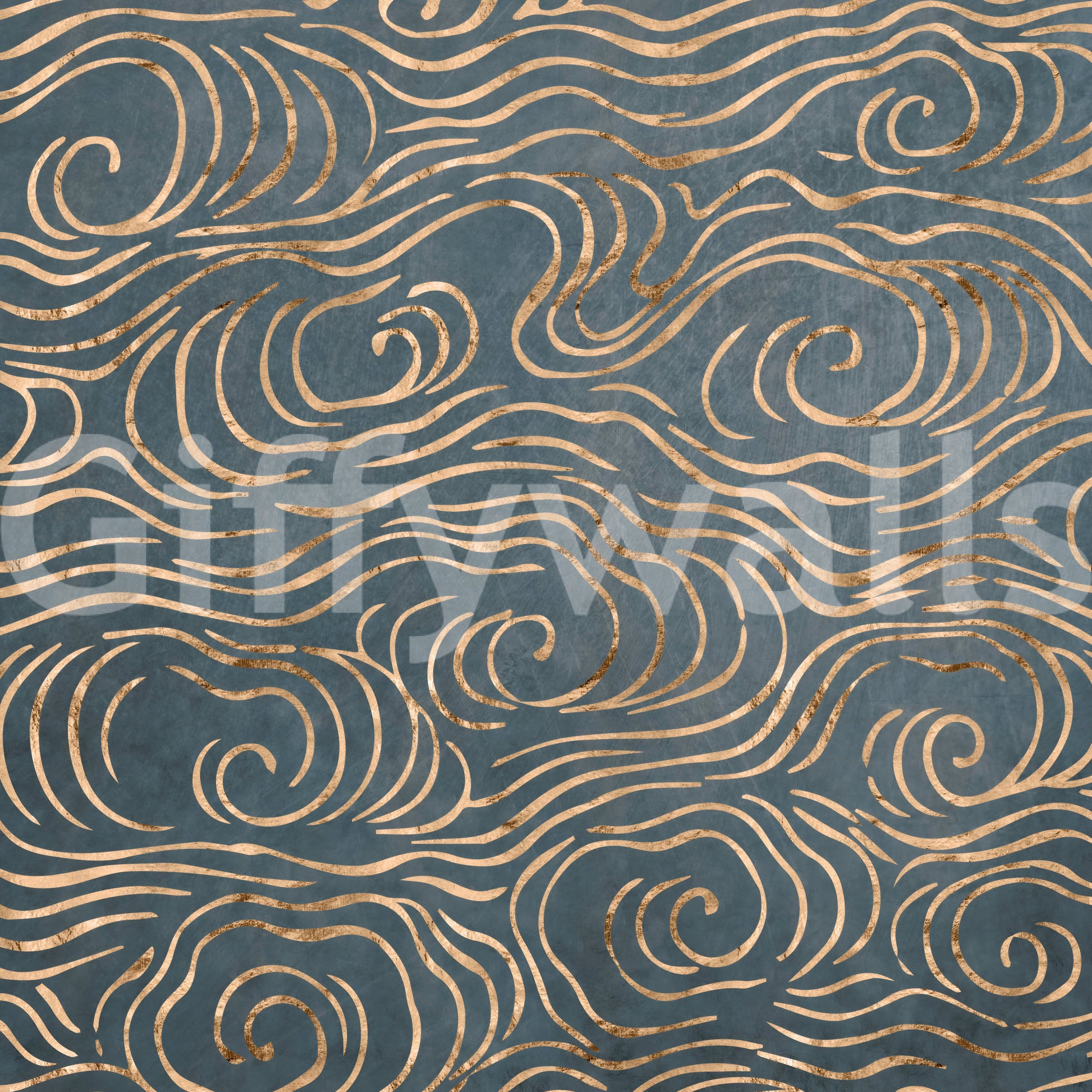 The petrol hued Japanese Waves wallpaper will imbue your room with a moody, sophisticated atmosphere. The intricate, lined pattern is truly stunning; beautiful swirly shapes luxuriously spread out and are touched by golden metallic effect accents.. This Japanese wallpaper creates an air of alluring mystery. It will accentuate light and dark colours alike, transforming any room into an elegant escape. With clean lines and a bold design, this wallpaper is sure to captivate. Let the Japanese Waves wallpaper invigorate your home with beauty and Japandi style.