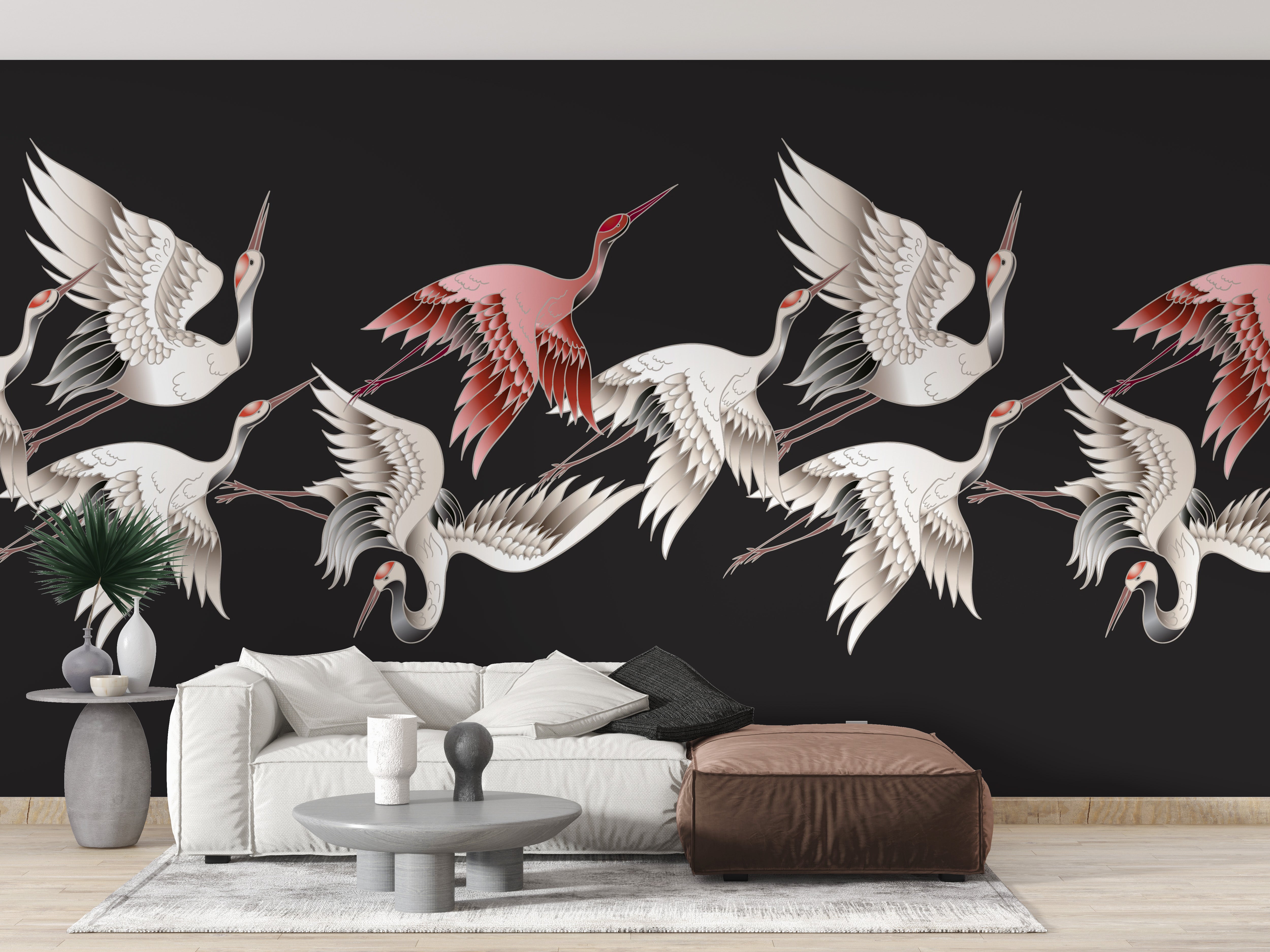 Step into a serene world where elegance meets tranquility with our Japanese White Flying Crane Black Wallpaper. This exquisite design captures the graceful beauty of flying cranes against a dramatic black backdrop, symbolizing good fortune and longevity. Immerse your space in the timeless allure of Japanese artistry, creating a peaceful haven that soothes the soul. Ideal for creating a focal point in any room, this serene beauty of Japanese wallpaper adds depth, dimension, and a touch of nature’s elegance. Elevate your decor to new heights with this captivating design that bridges the gap between tradition and modernity.