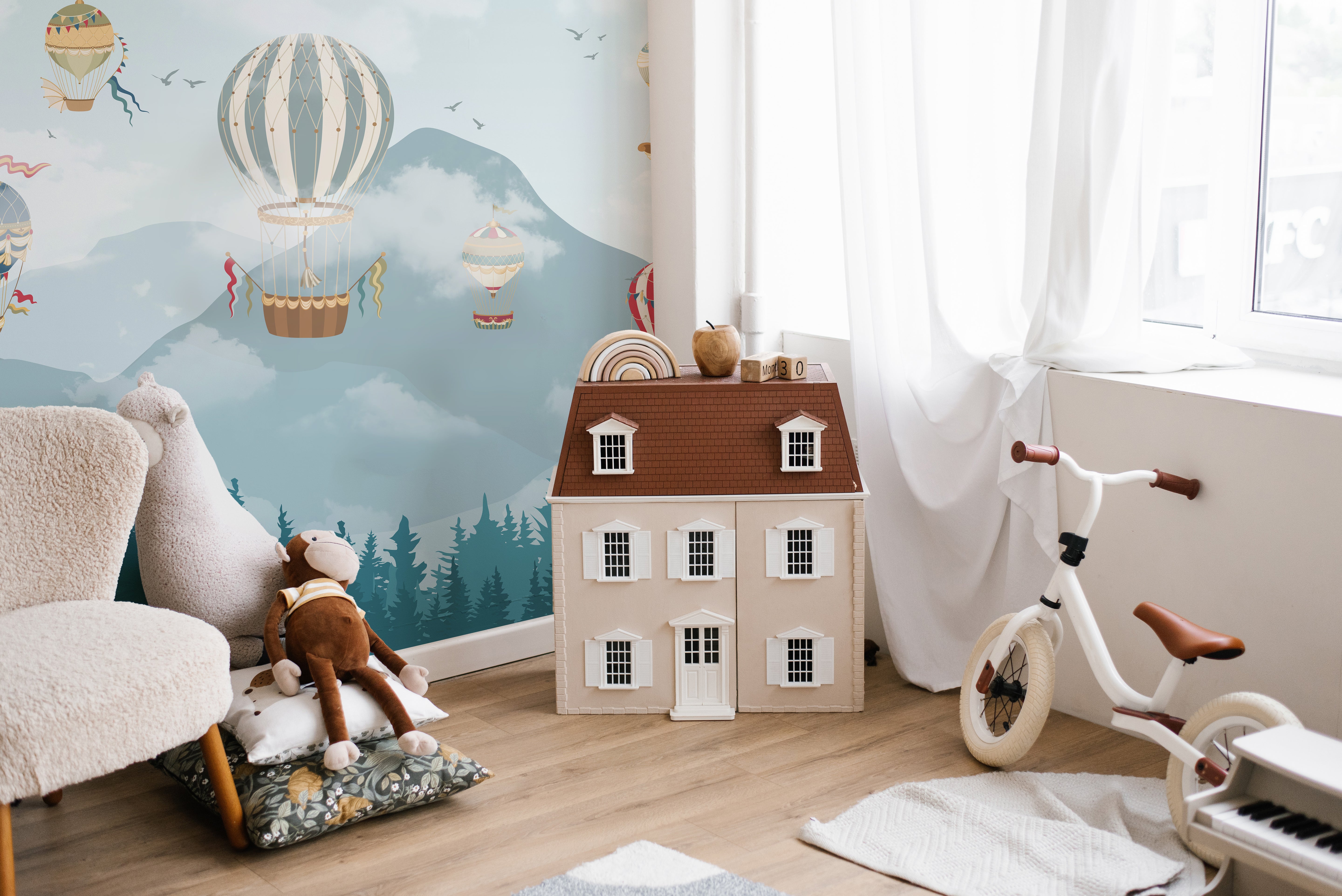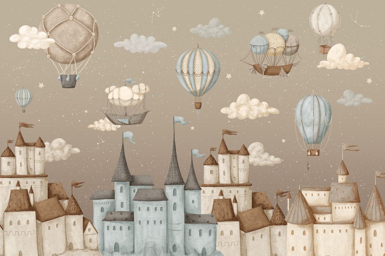 Discover a whimsical world above the clouds with our fantasy hot air balloons mural wallpaper, perfect for any playroom setting. This charming fantasy wallpaper features a delightful array of colourful hot air balloons, soaring through a serene, grey-toned sky. The design blends playful vibrancy with a subtle grey backdrop, creating a balance that both excites and soothes. Ideal for fostering imagination in children, this wallpaper serves as a backdrop for endless stories and make-believe adventures. Crafted for durability and ease of application, its a practical choice for busy play areas. This grey wallpaper offers a unique blend of fantasy and elegance, making it a captivating addition to any childs playroom, where dreams take flight in a world of wonder.