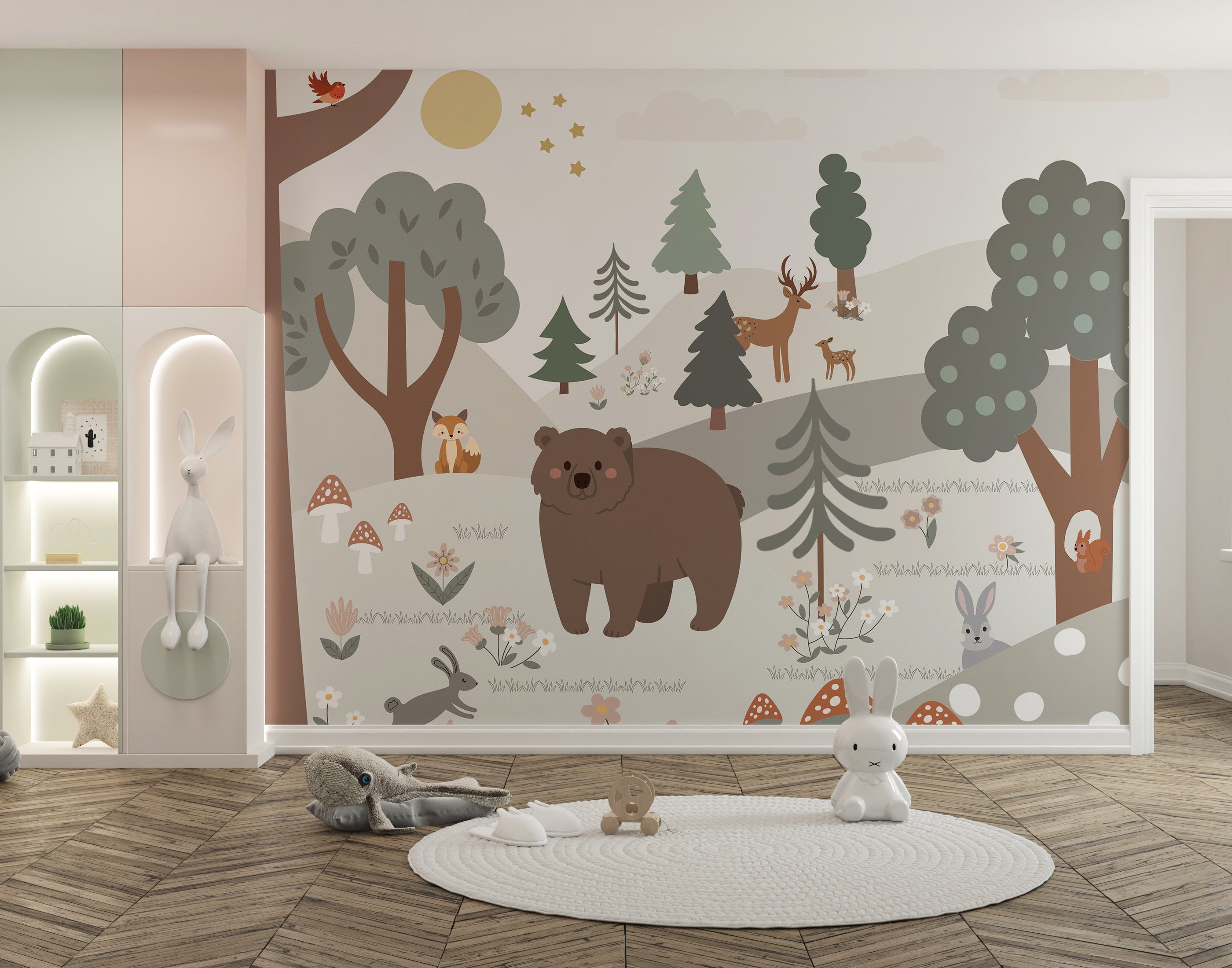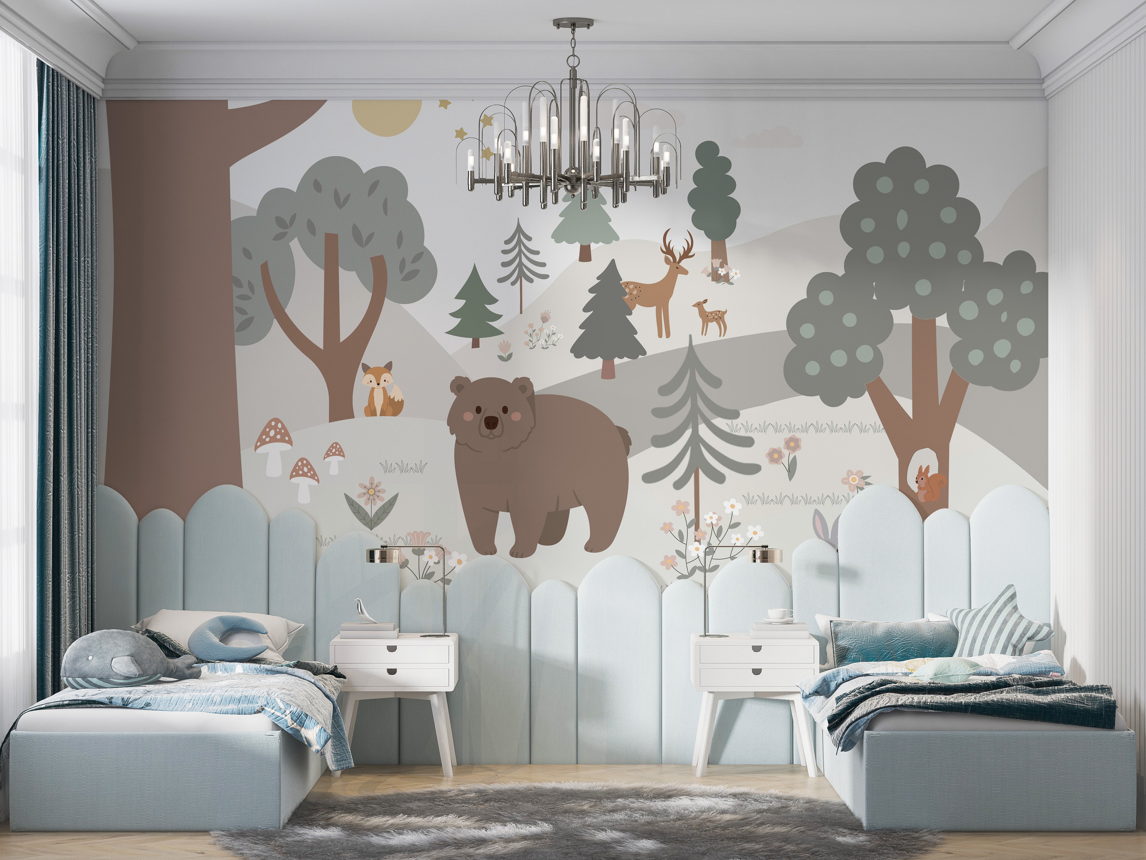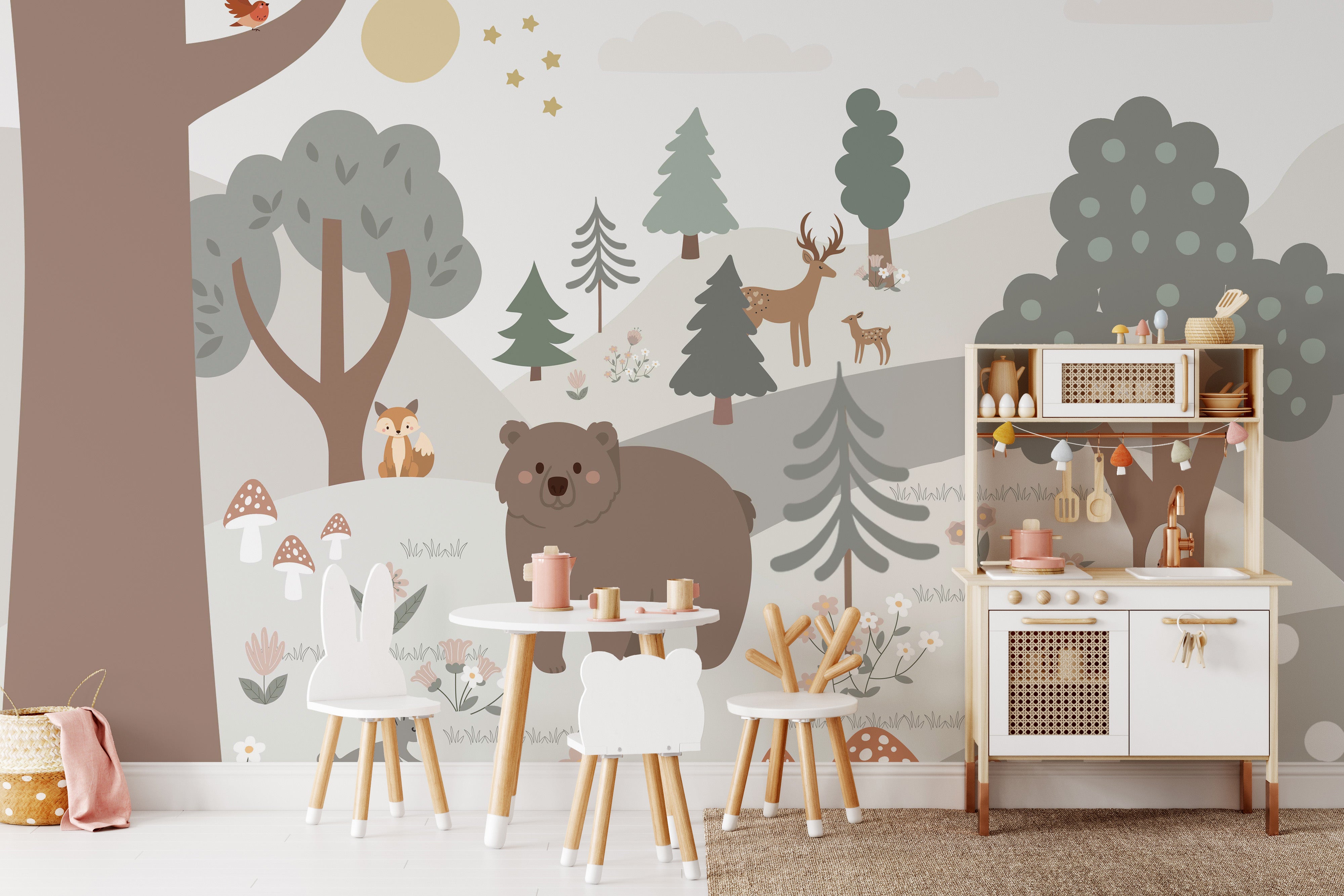 Bring the untamed magic of the jungle into your child's bedroom with this fun and colorful cartoon jungle forest removable mural wallpaper. Your little ones will love exploring all the different animals and plants that adorn the walls, taking them on imaginative adventures through the thick, lush forest. With elements like playful bears and friendly monkeys, this wallpaper is the perfect way to add a touch of whimsy and enchantment to any kid's room without the hassle of permanent installation. So why settle for bland and boring walls when you can transform your space into a wild and wonderful world that your kids will love and remember for years to come?