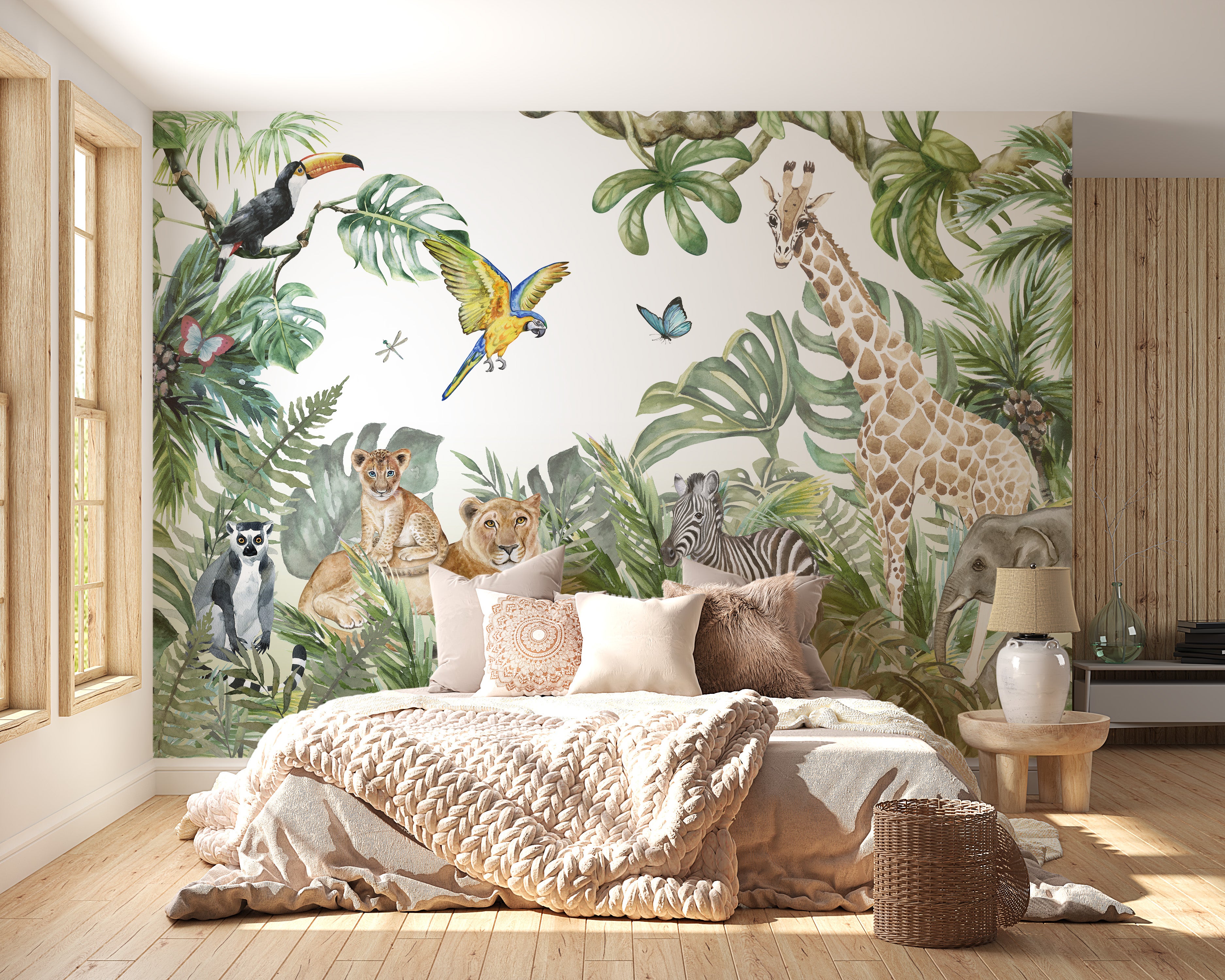 Animals Jungle Wallpaper Mural for Kids Room Decor