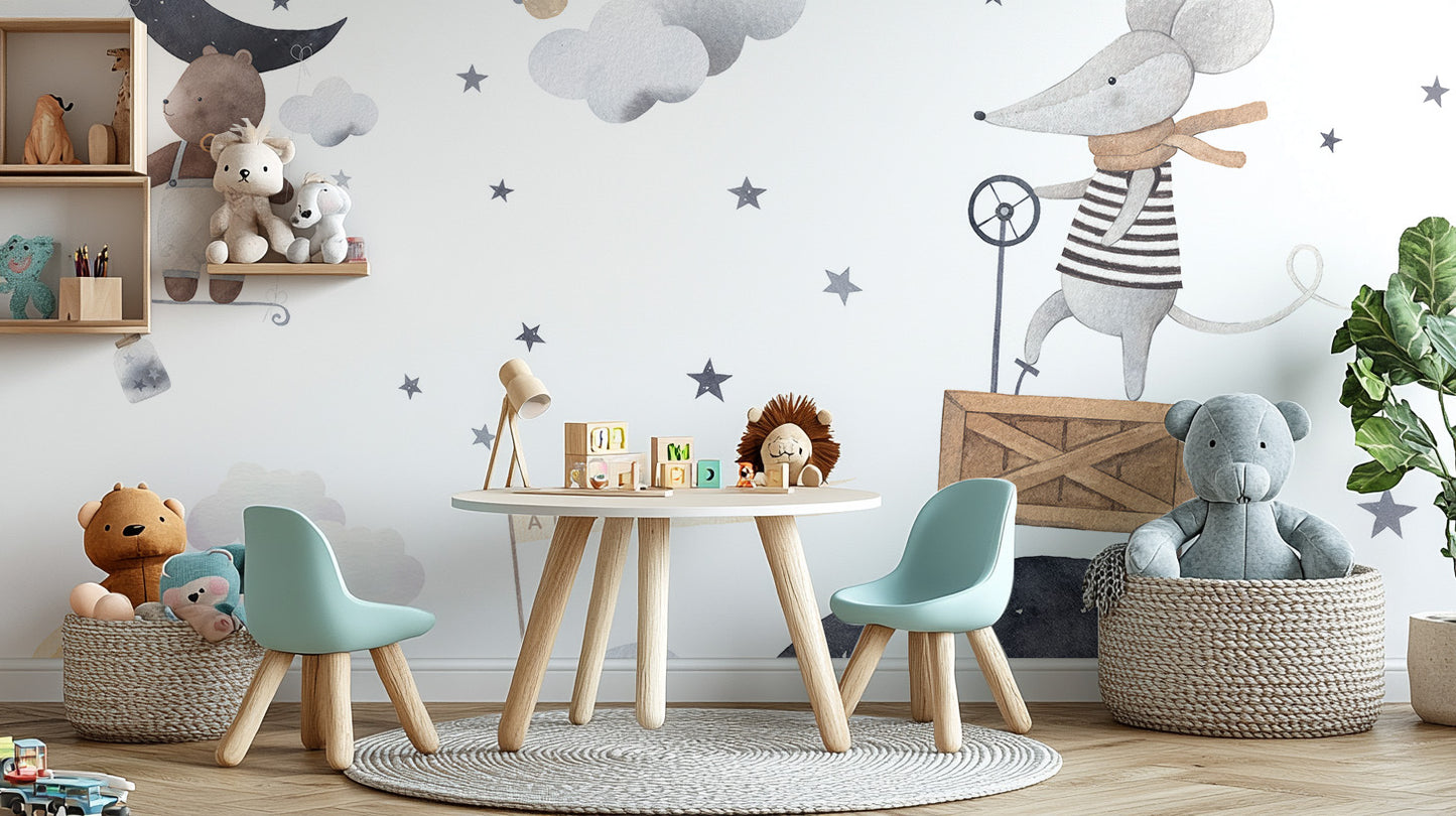 Brighten up your nursery with our nursery wallpaper, Whimsical Playing Animal Wallpaper Mural. This design features playful animal characters set against soft, pastel backdrops, making the room feel inviting and lively. It's perfect for children, fostering a space where they can feel happy and inspired. The wallpaper is crafted from durable materials designed to withstand the energy of active children, ensuring it lasts through their early years. Its panels are tailored to fit a variety of wall sizes, making installation simple and achieving a seamless look easy. Bring this wallpaper into your home to create a space that children will love and parents will appreciate.