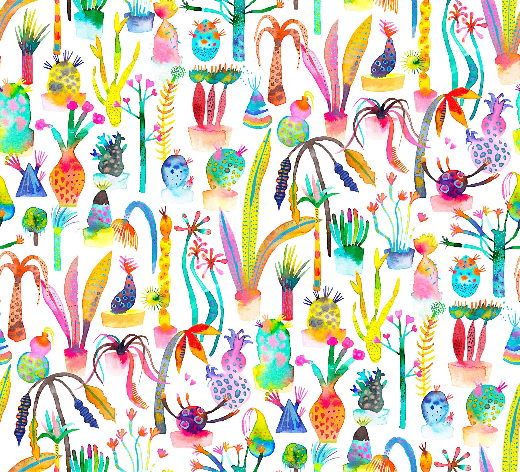 Dive into a vibrant world of whimsical wonder with "Kids Lush Garden." This captivating wallpaper bursts with a kaleidoscope of colors and playful, hand-painted plant life. From fantastical cacti and quirky succulents to exuberant, stylized trees, each element is brimming with personality. The bright, joyful palette and the cheerful, almost cartoonish style create a delightful and energetic atmosphere, perfect for a child's room or any space needing a boost of happy energy. This design is a playful exploration of nature, reimagined for a youthful and imaginative audience, making it a unique and eye-catching addition to any digital device.