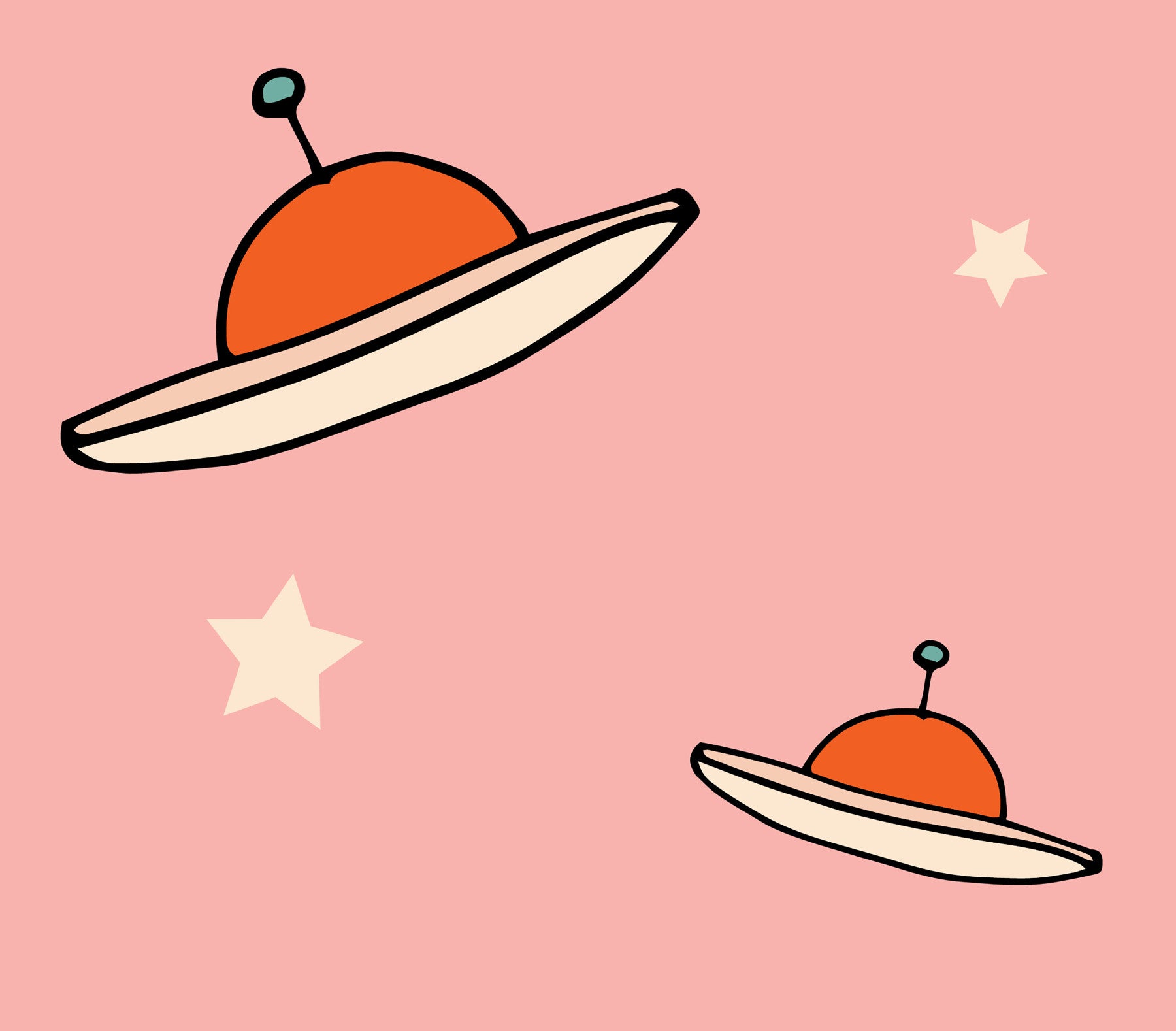 Kids Minimal Vintage UFO Pink wallpaper featuring cute flying saucers stars.